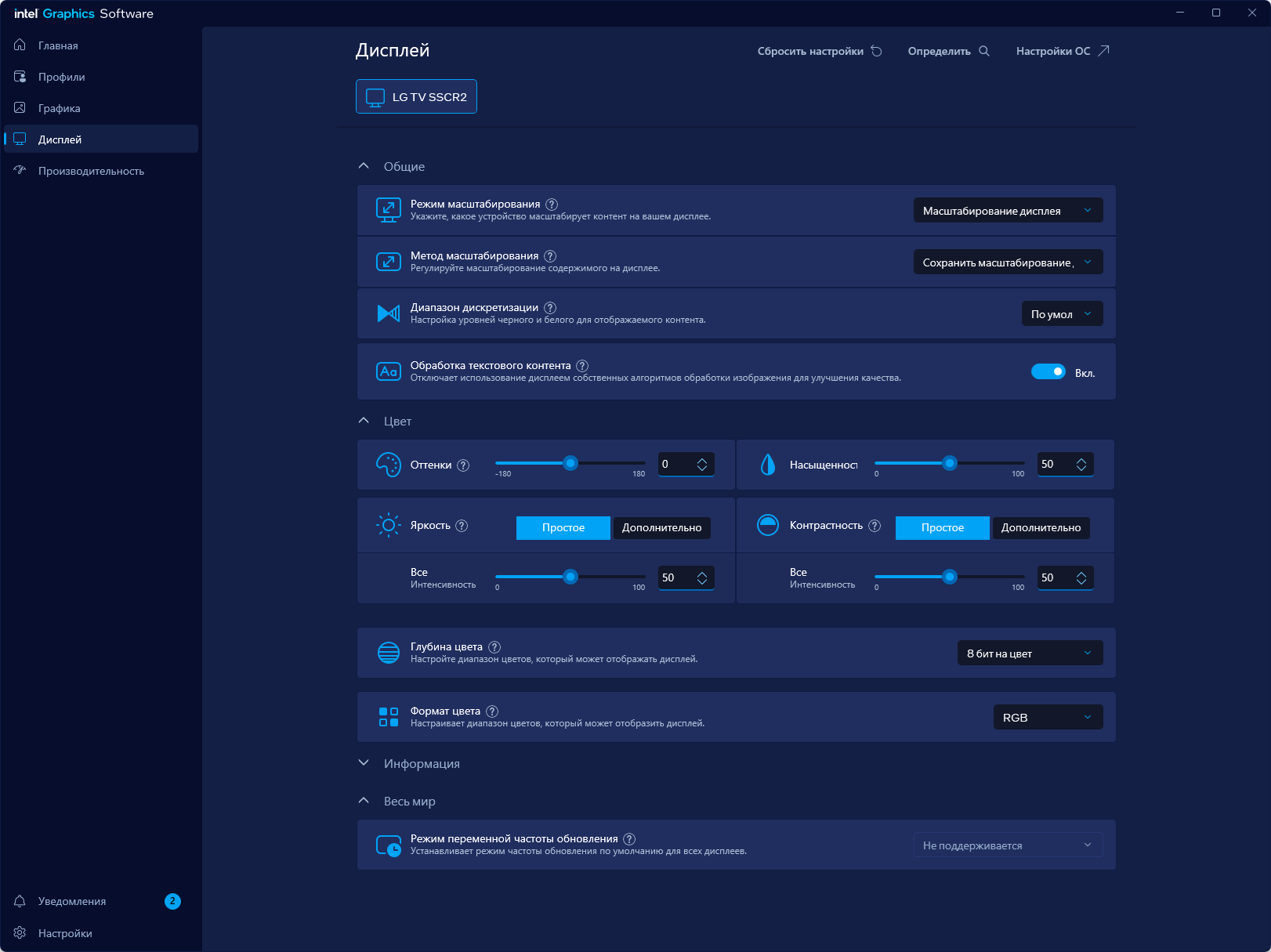 - Режим 2D с просмотром фильмов: используется SmoothVideo Project (SVP) — аппаратное декодирование со вставкой промежуточных кадров