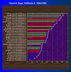 | 18 | RTX 4060 Ti 8 ГБ, 2535—2790 МГц/18 ГТ/с | 2055 | 514 | 40 000 |