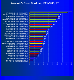 | 22 | Arc B570 10 ГБ, 2500—2750 МГц/19 ГТ/с | 913 | 326 | 28 000 |