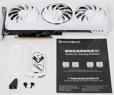 Maxsun Intel Arc B580 iCraft 12G (12 ГБ) — интересное современное решение со стоимостью около 30 тысяч рублей. Карта имеет стандартные размеры, занимая чуть более двух слотов в системном блоке. Использованная СО тихая, карта может потреблять до 190 Вт и имеет два стандартных 8-контактных разъема питания. В комплекте идет подставка, хотя карта не слишком тяжелая и не очень нуждается в подставке.