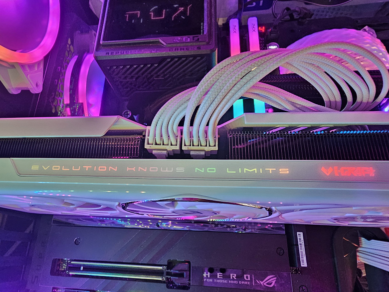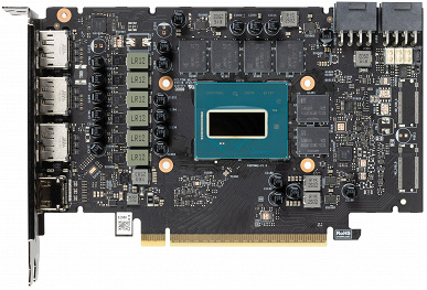 Карта имеет стандартный набор видеовыходов: три DP 2.1b и один HDMI 2.1a.