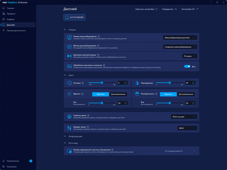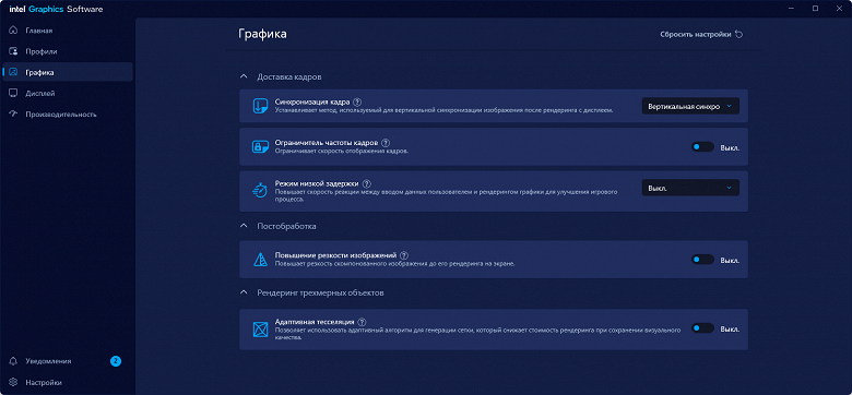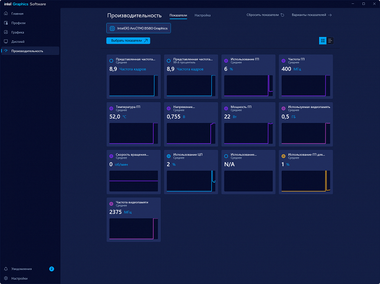 У компании Maxsun нет собственного ПО по управлению работой карт, всё это обеспечивается с помощью утилиты Intel Graphics Software, входящей в состав драйверов.