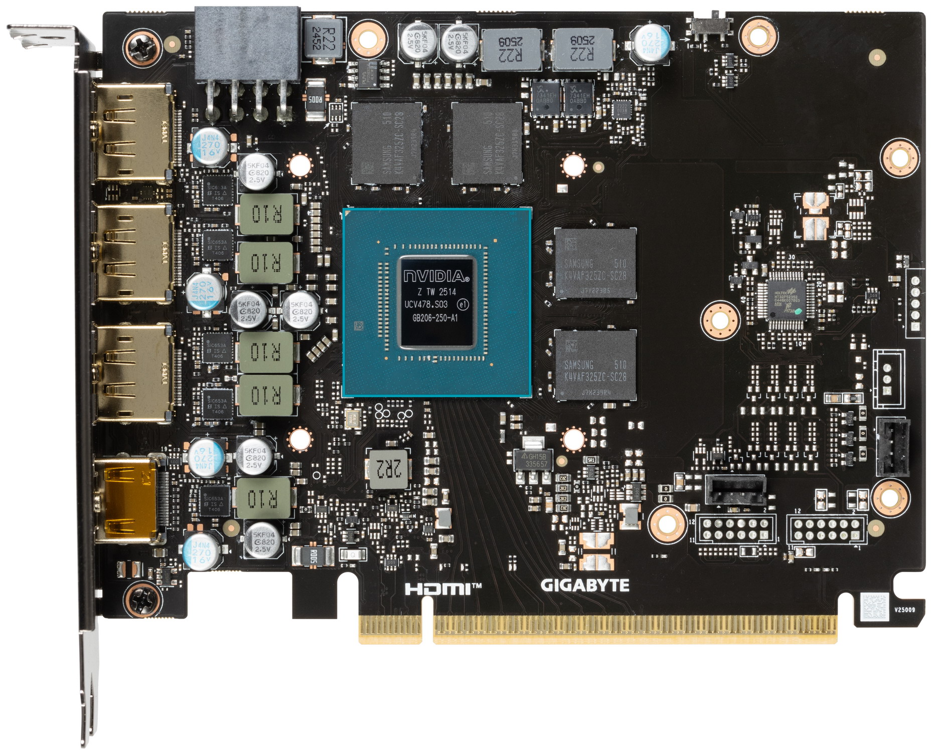 Мы сравниваем видеокарту Palit с аналогичным продуктом другого производителя, поскольку эталонной карты у нас нет, а первым ускорителем на базе GeForce RTX 5060 была именно видеокарта Gigabyte. Очевидно, что дизайны сильно отличаются в плане размещения подсистемы питания, включая разъем для дополнительного питания. Дизайн карты Palit наиболее близок к эталонному, а у карты Gigabyte, вероятно, конструкция СО потребовала переделки дизайна PCB.
