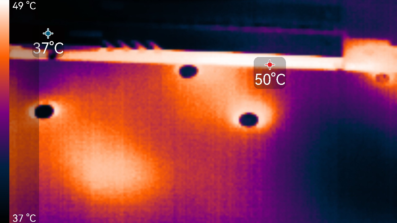Максимальный нагрев наблюдался в центральной части PCB, а также около разъема PCIe.