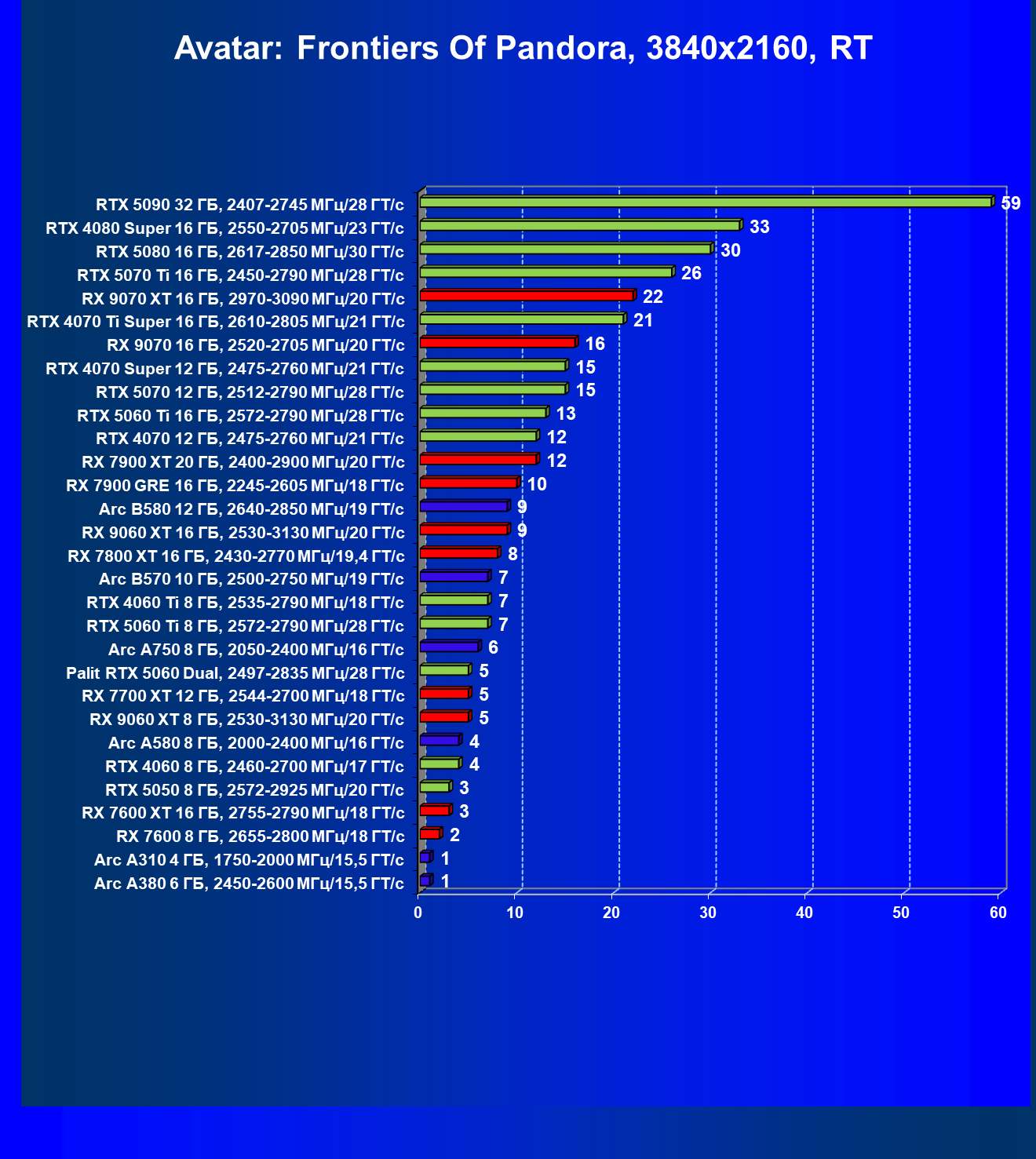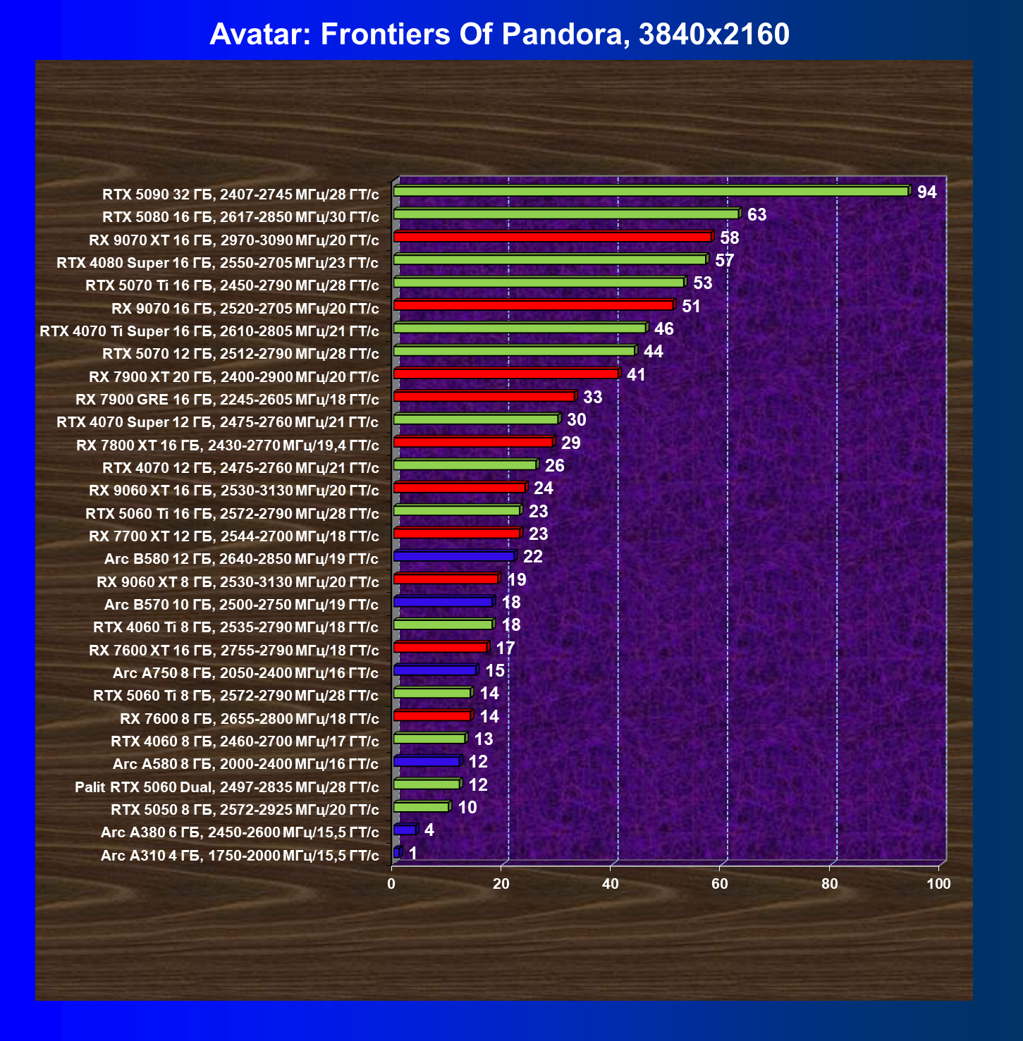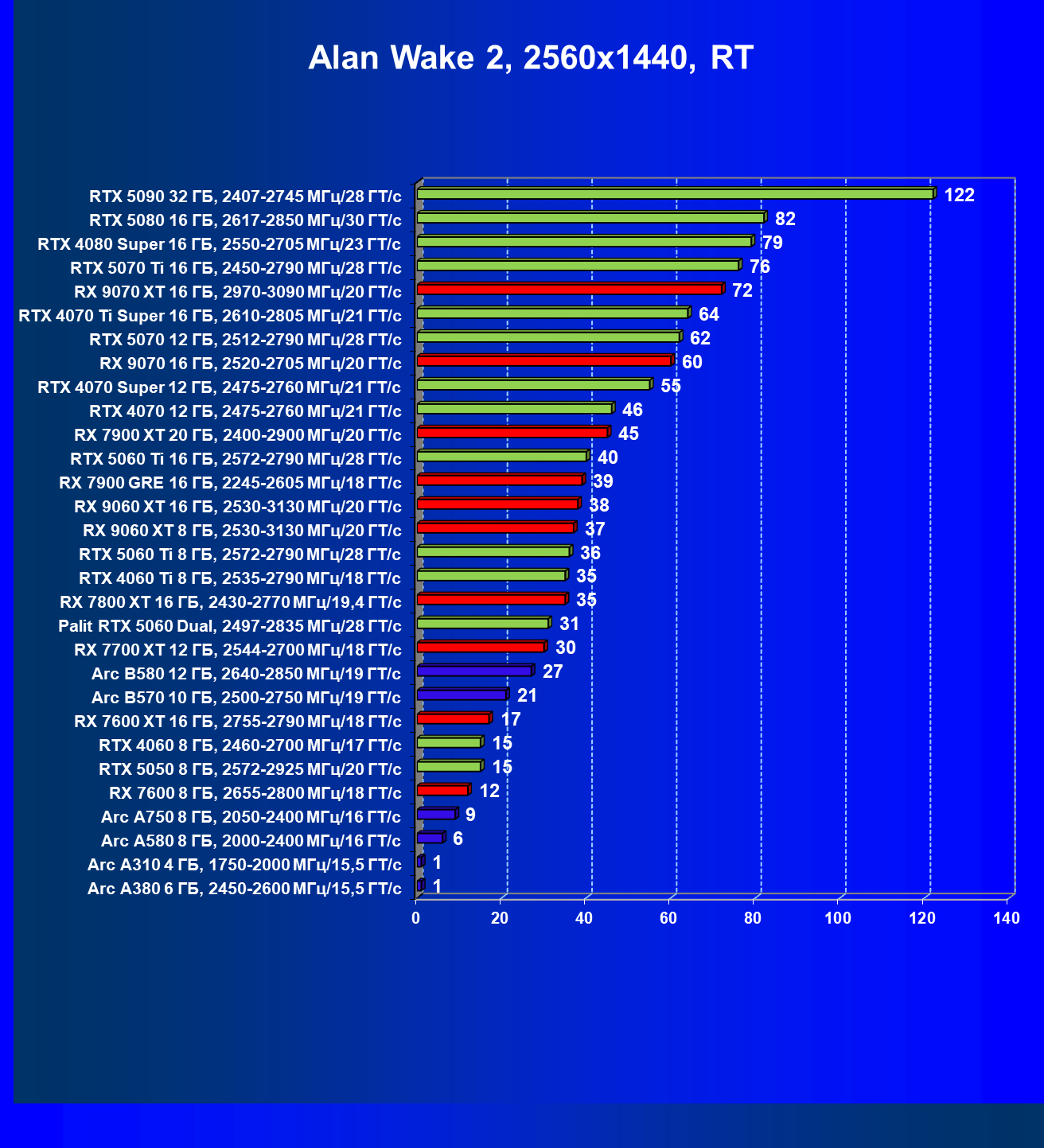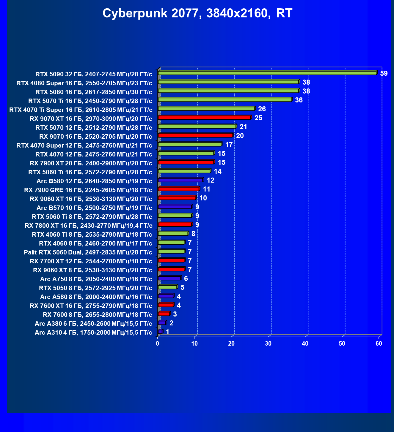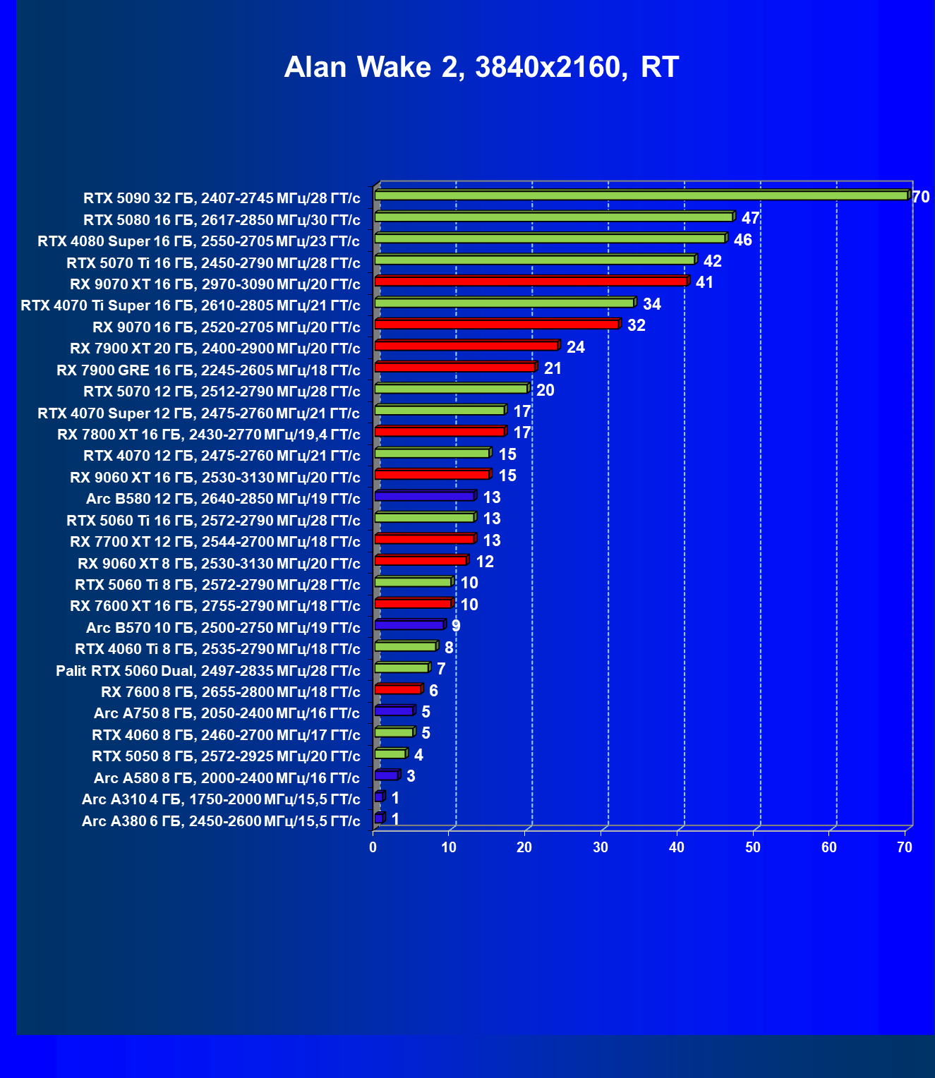 | 04 | RX 9060 XT 8 ГБ, 2530—3130 МГц/20 ГТ/с | 160 | 657 | 41 000 |