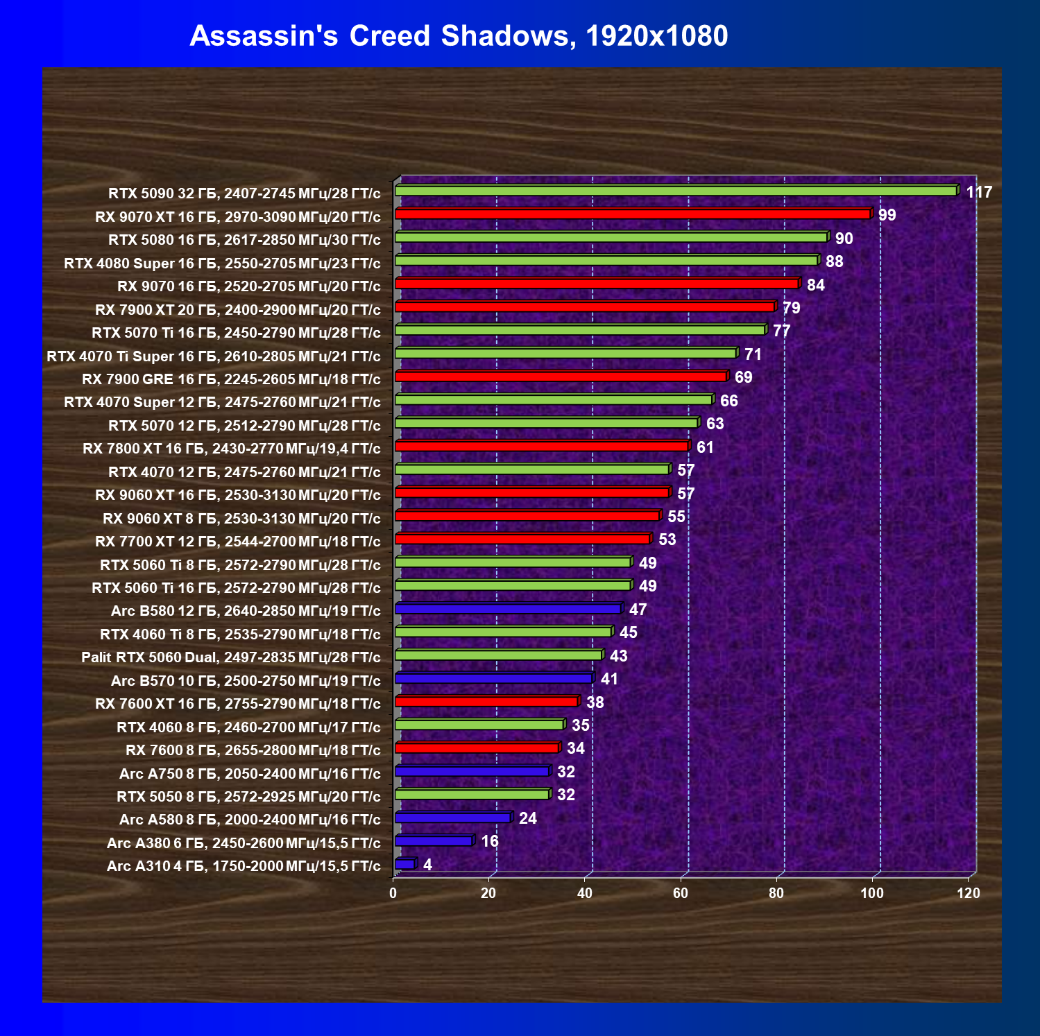 | 23 | Arc B580 12 ГБ, 2640—2850 МГц/19 ГТ/с | 880 | 293 | 30 000 |