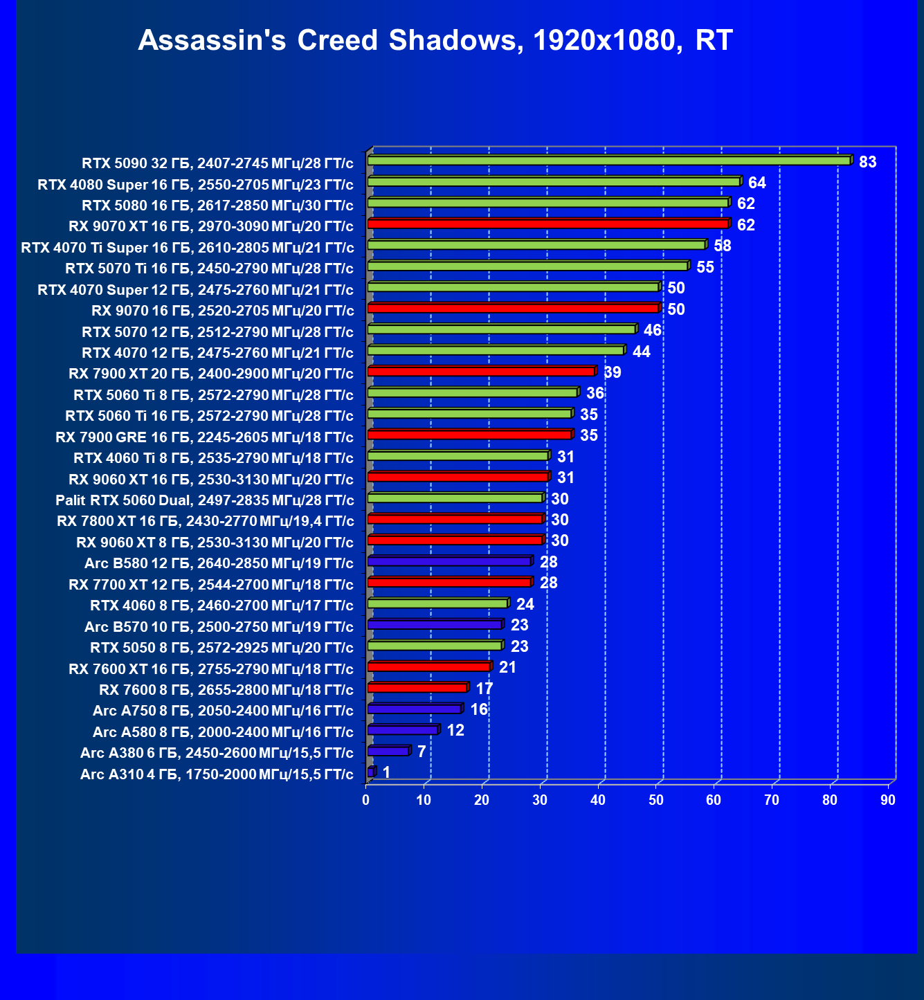 | 03 | Arc B570 10 ГБ, 2500—2750 МГц/19 ГТ/с | 166 | 449 | 27 000 |