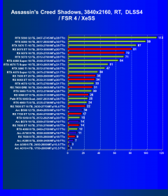 Рейтинг составлен по 10 тестам, в которых используется технология трассировки лучей и одновременно технология Nvidia DLSS, AMD FSR или Intel XeSS. Этот рейтинг нормирован по самому слабому ускорителю в данной группе — Arc A310 (то есть сочетание скорости и функций Arc A310 приняты за 100%).