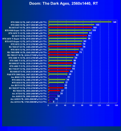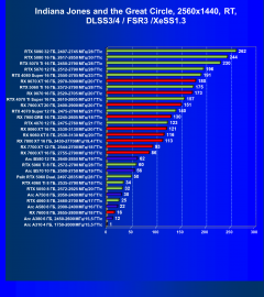 Если включить RT, то во все игры точно так же можно играть с высокими настройками графики в разрешении 1080p (Full HD), но динамическое масштабирование (DLSS или FSR/XeSS) будет при этом обязательным. В разрешении 1440p (2.5K) хорошую производительность можно получить только в играх, поддерживающих DLSS 4 (за счет MFG).