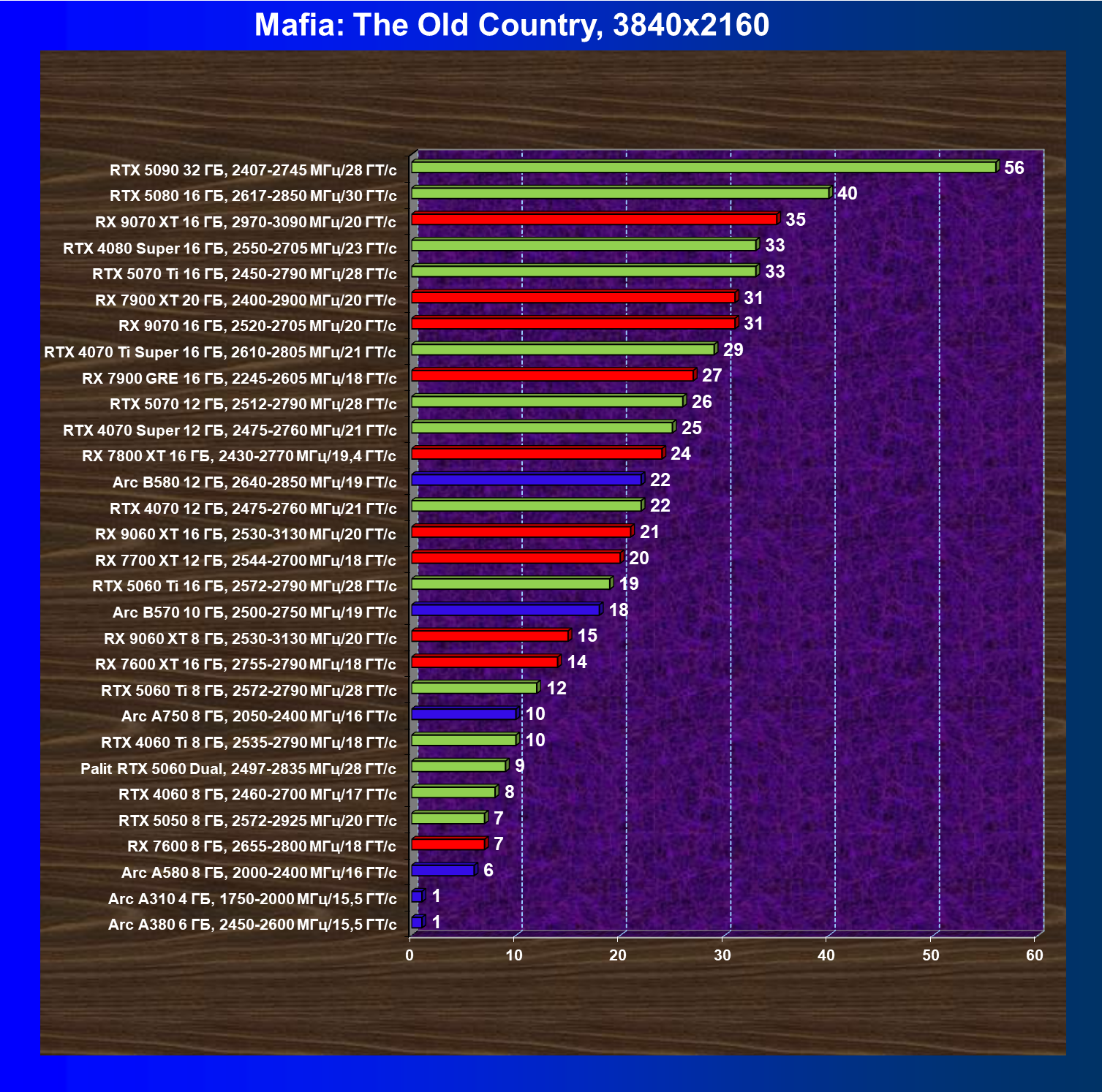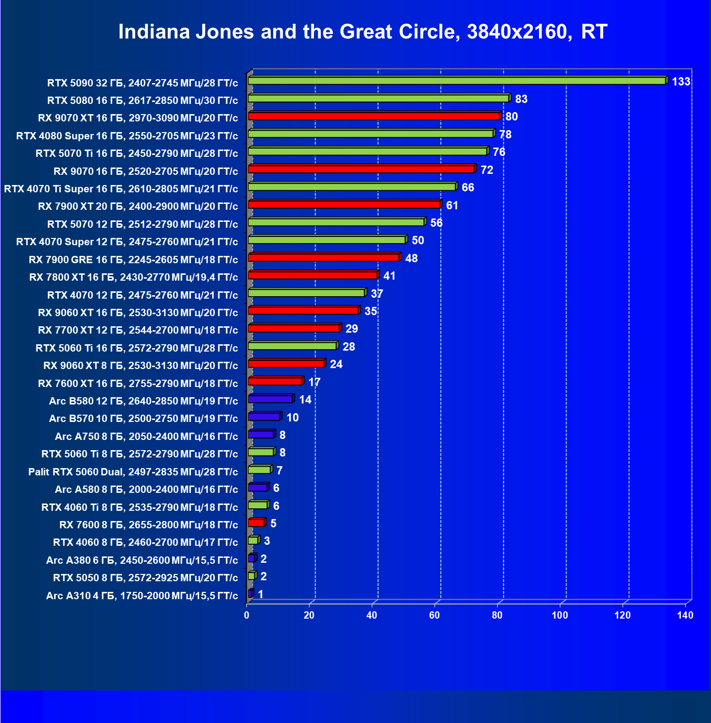 | 06 | RX 9060 XT 8 ГБ, 2530—3130 МГц/20 ГТ/с | 324 | 1327 | 41 000 |