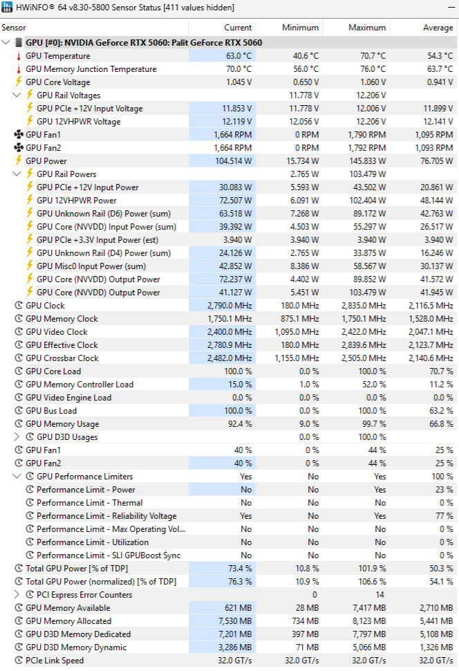 | 04 | RTX 5060 Ti 8 ГБ, 2572—2790 МГц/28 ГТ/с | 336 | 1478 | 44 000 |