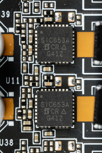 В преобразователе питания ядра используются транзисторные сборки DrMOS — SiC653A компании Vishay, рассчитанные на 50 А.