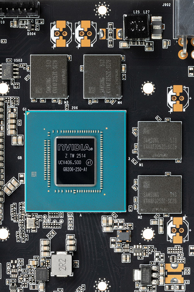 Ядро произведено на 14-й неделе 2025 года (кристалл выполнен по техпроцессу TSMC 4N — по разным оценкам это 5 нм). Маркировка — GB206-250, что означает урезанный в той или иной мере чип.