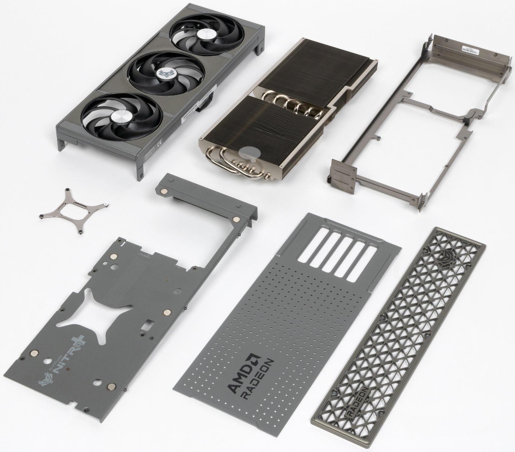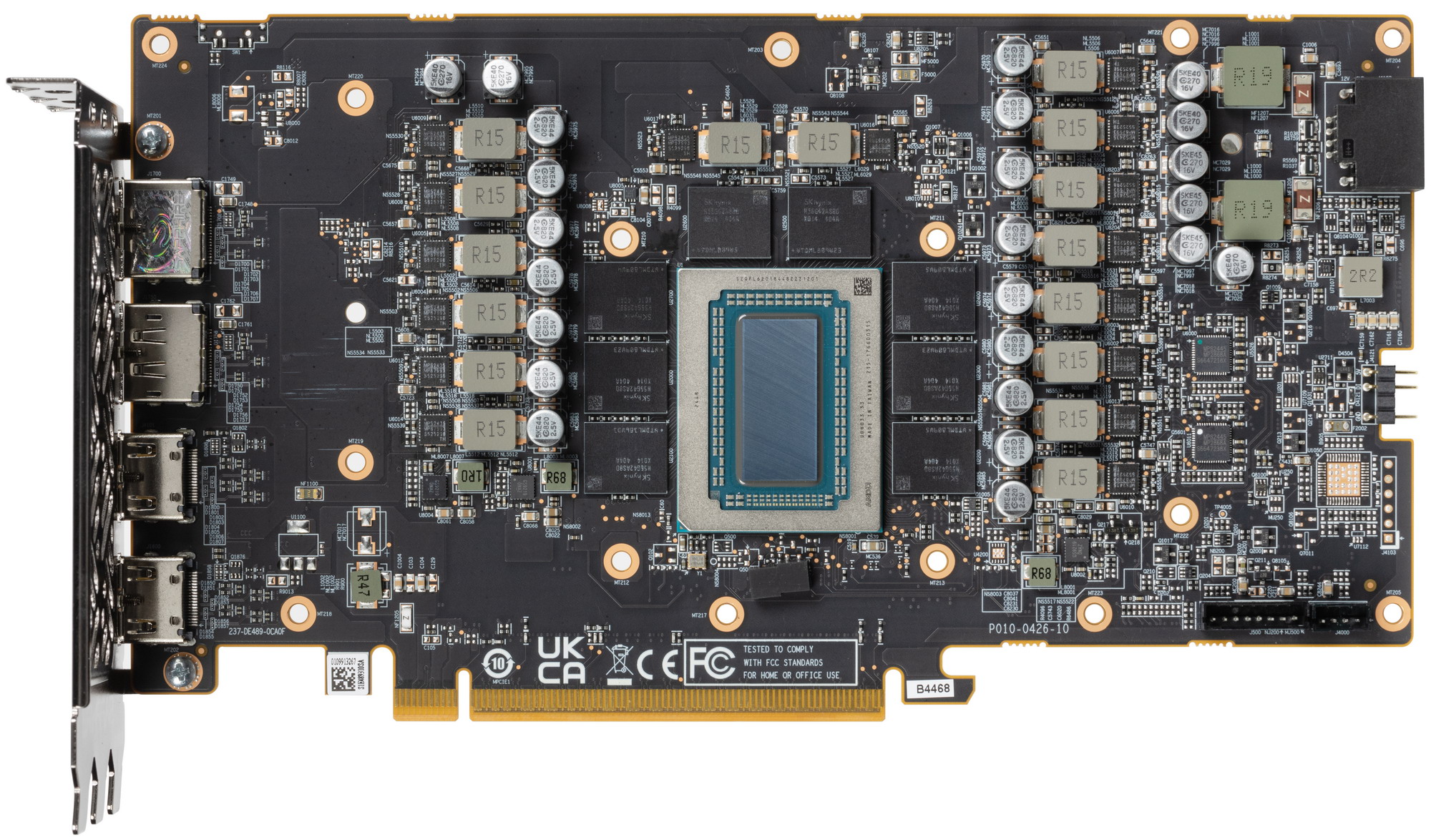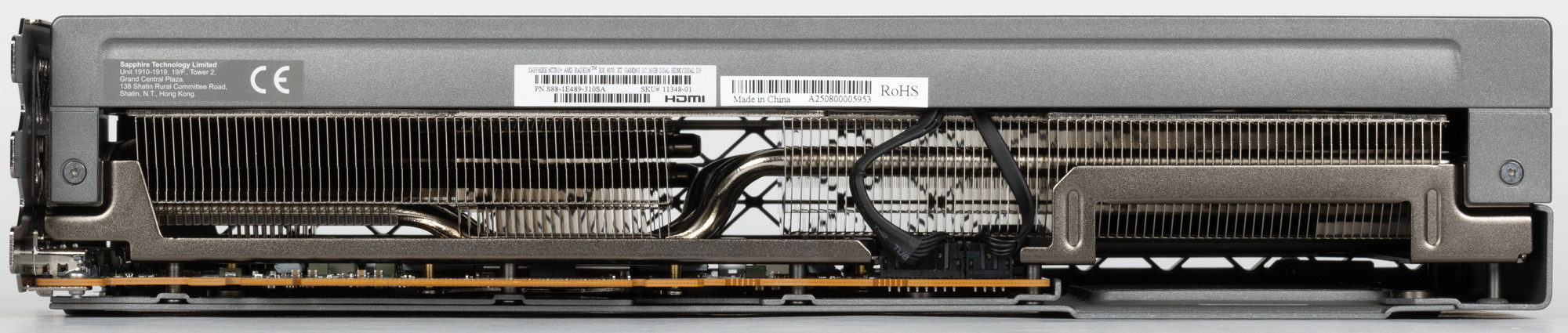 Очевидно, что обе карты различаются между собой исключительно из-за разного подвода дополнительного питания: у карты Sapphire — один 16-контактный разъем 12VHPWR, когда как референсный дизайн основан на трех 8-контактных разъема питания. Также следует отметить, что у карты Sapphire иной набор гнезд вывода графики: по 2 гнезда HDMI и DP, когда как референс-карта, как и карта Gigabyte имеет набор 1 HDMI + 3 DP.
