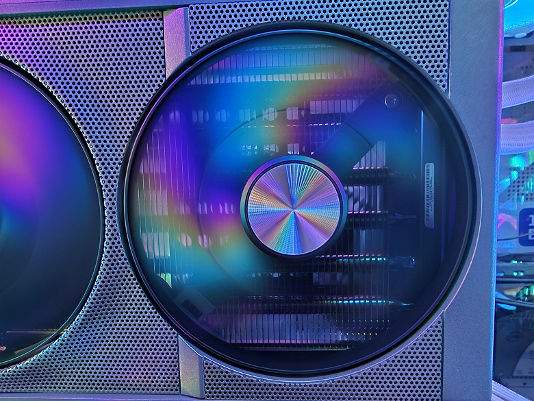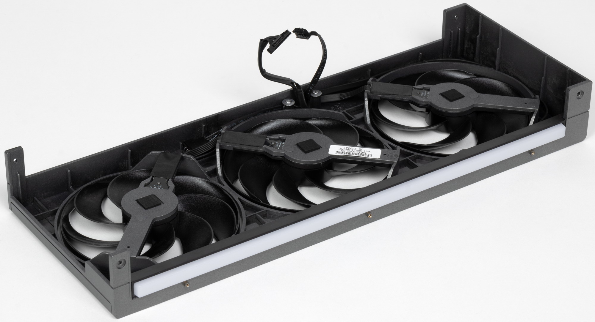Поверх радиатора установлен кожух с тремя вентиляторами ∅96 мм, имеющими по 7 лопастей и работающими на единой частоте вращения.