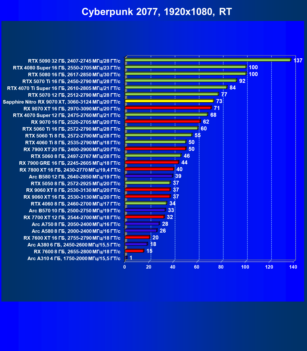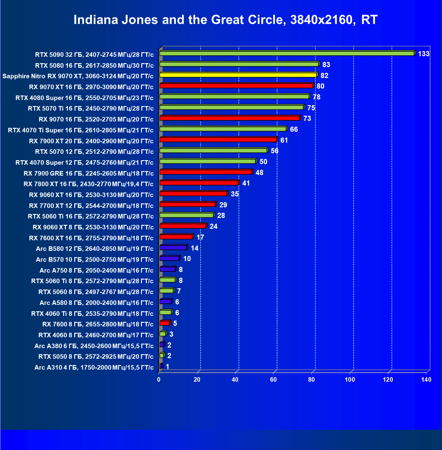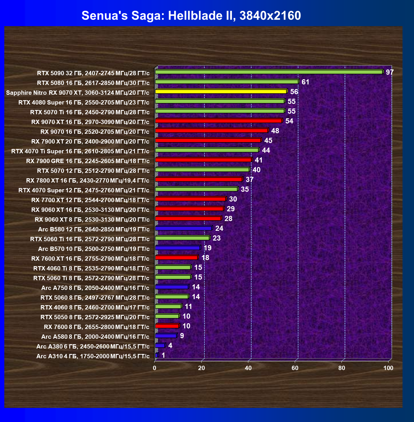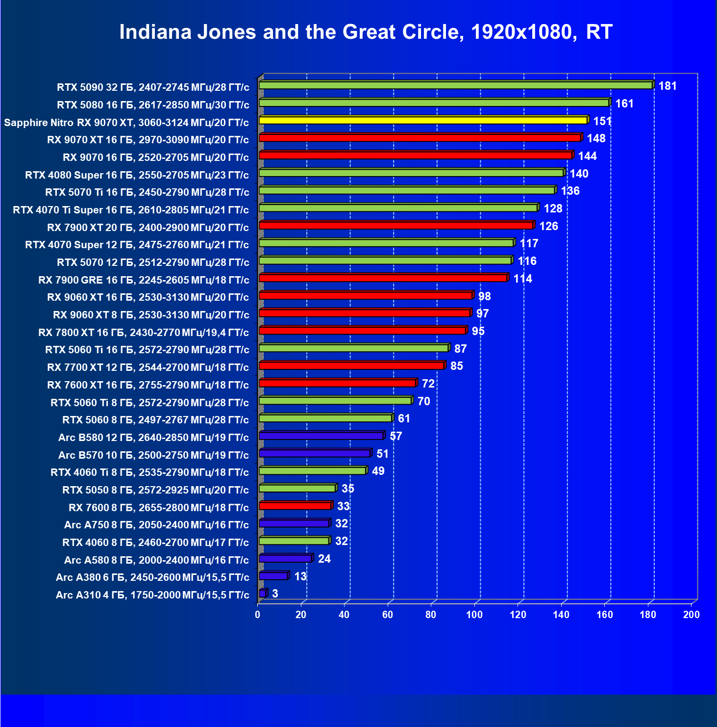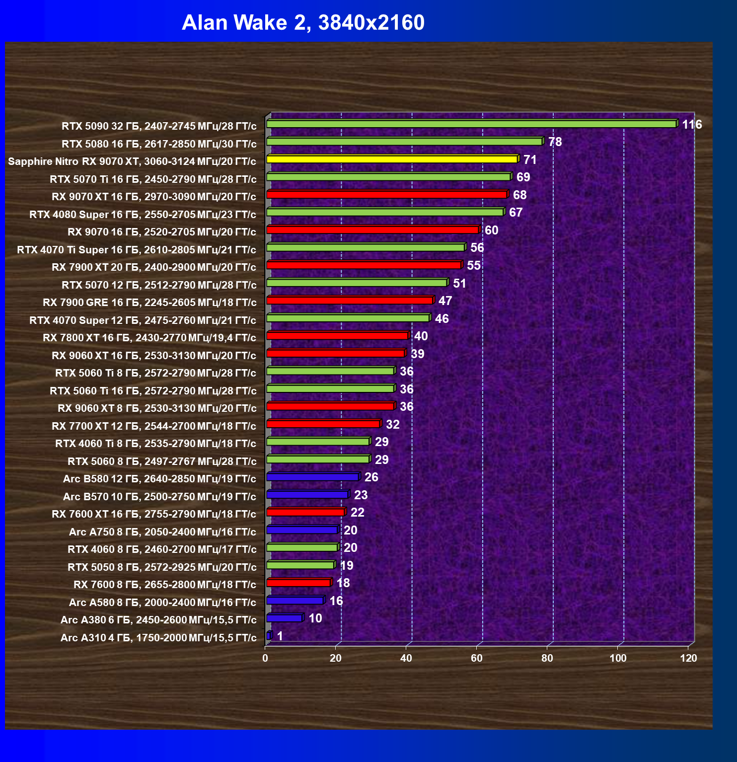| 03 | Sapphire Nitro RX 9070 XT, 3060—3124 МГц/20 ГТ/с | 2482 | 306 | 81 000 |
