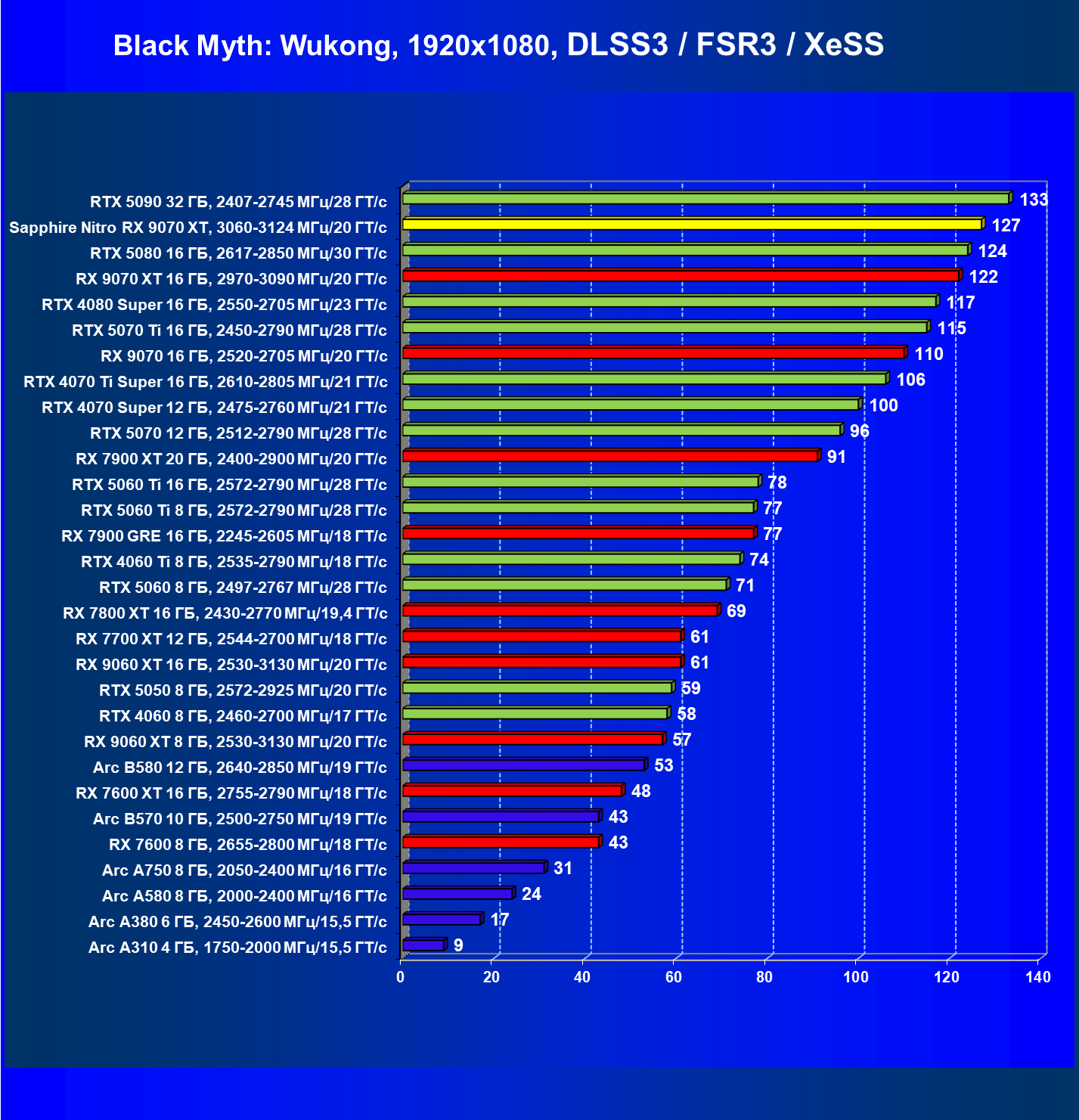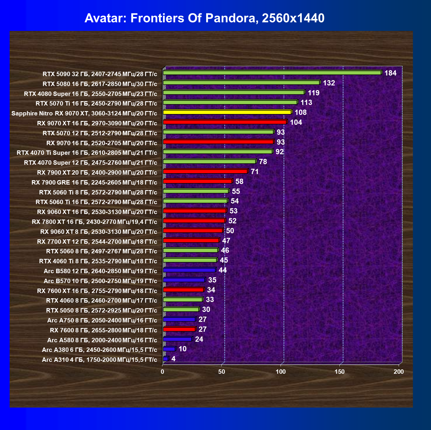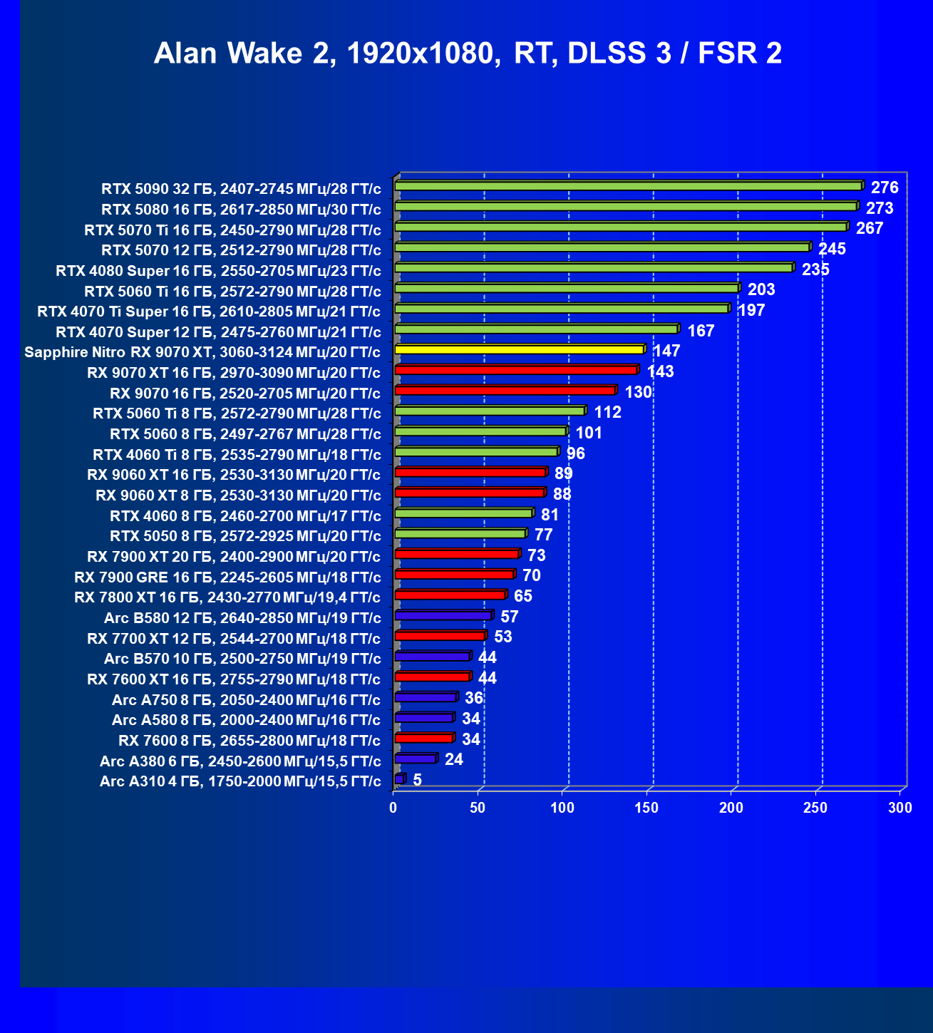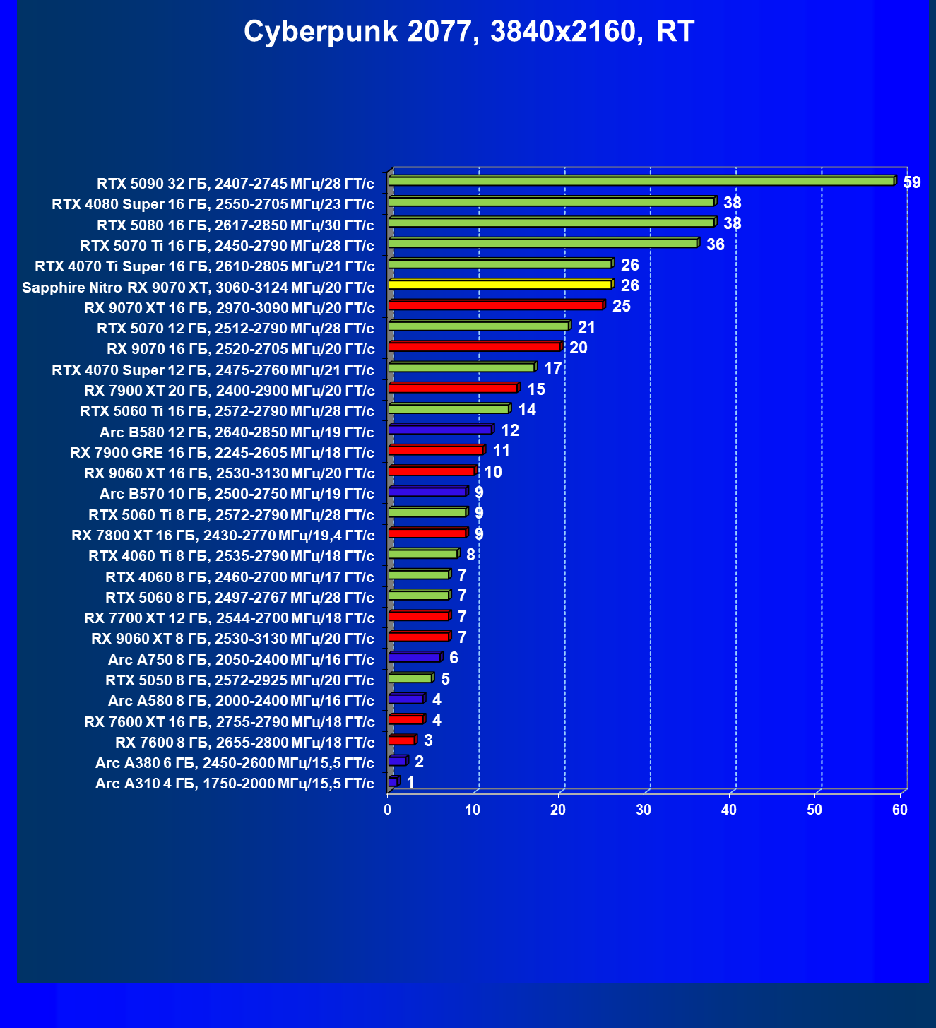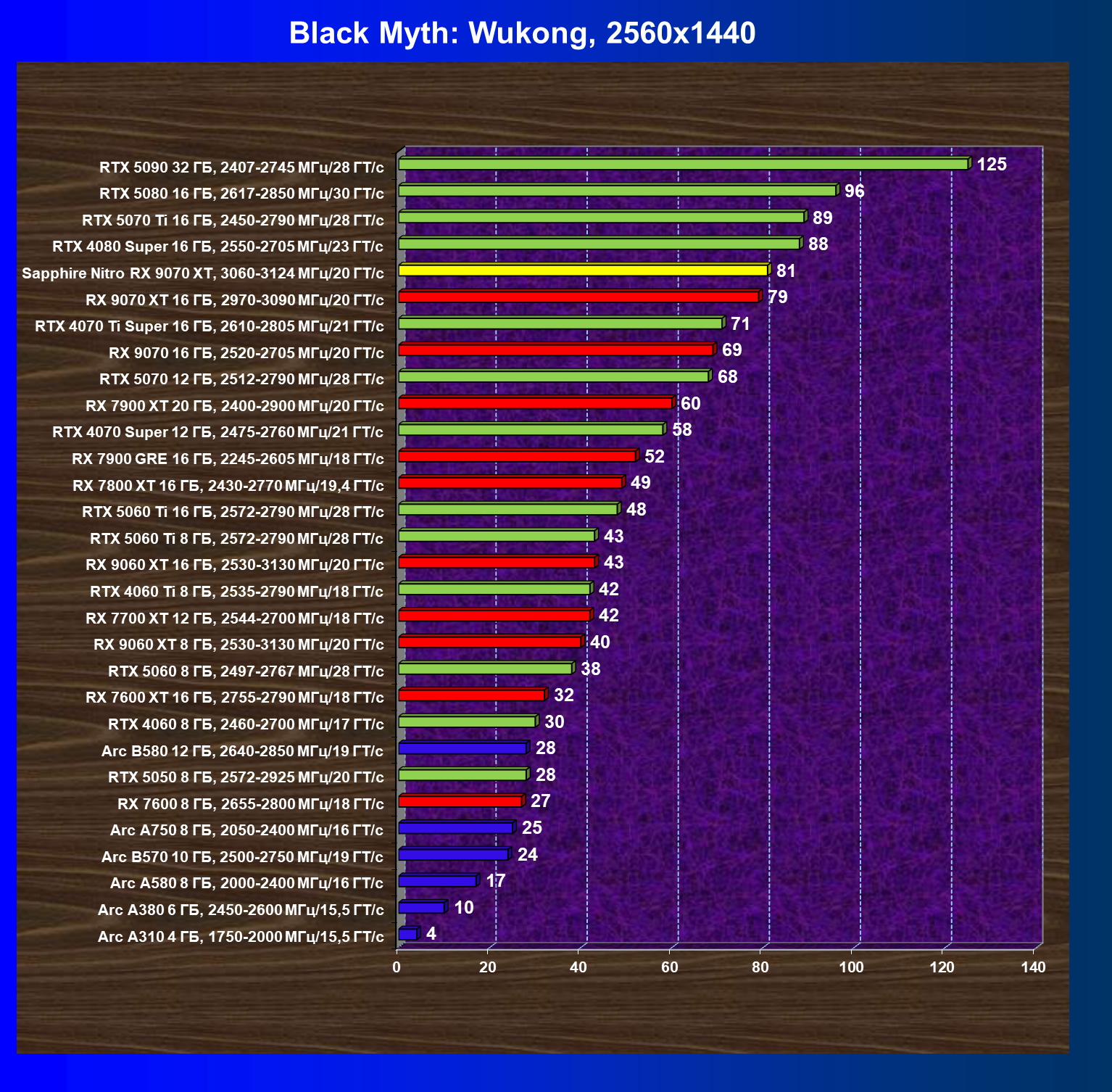 | 03 | Sapphire Nitro RX 9070 XT, 3060—3124 МГц/20 ГТ/с | 2482 | 306 | 81 000 |