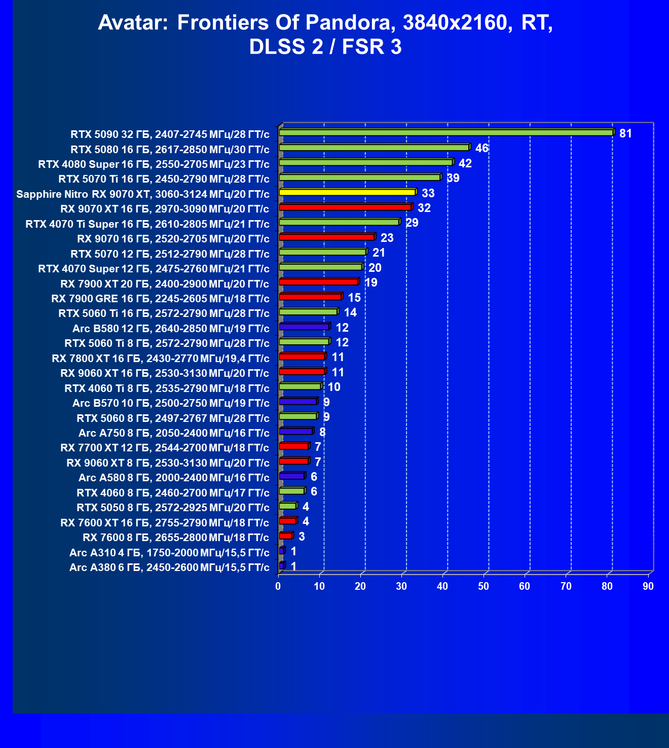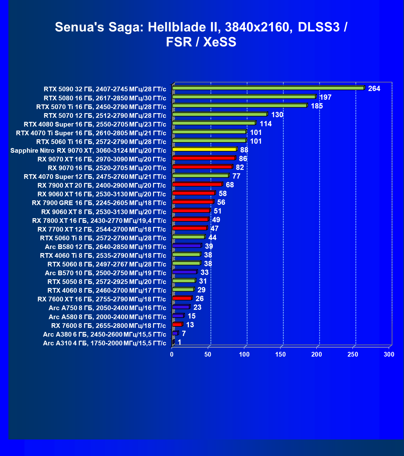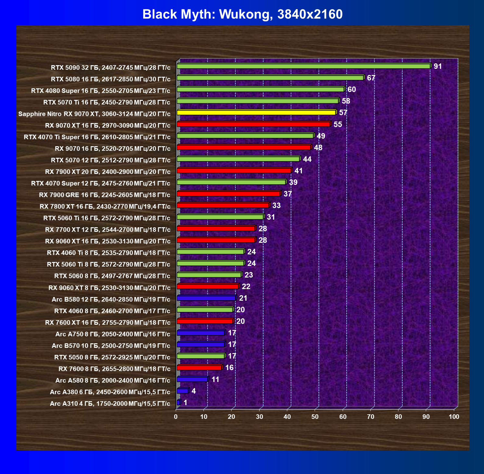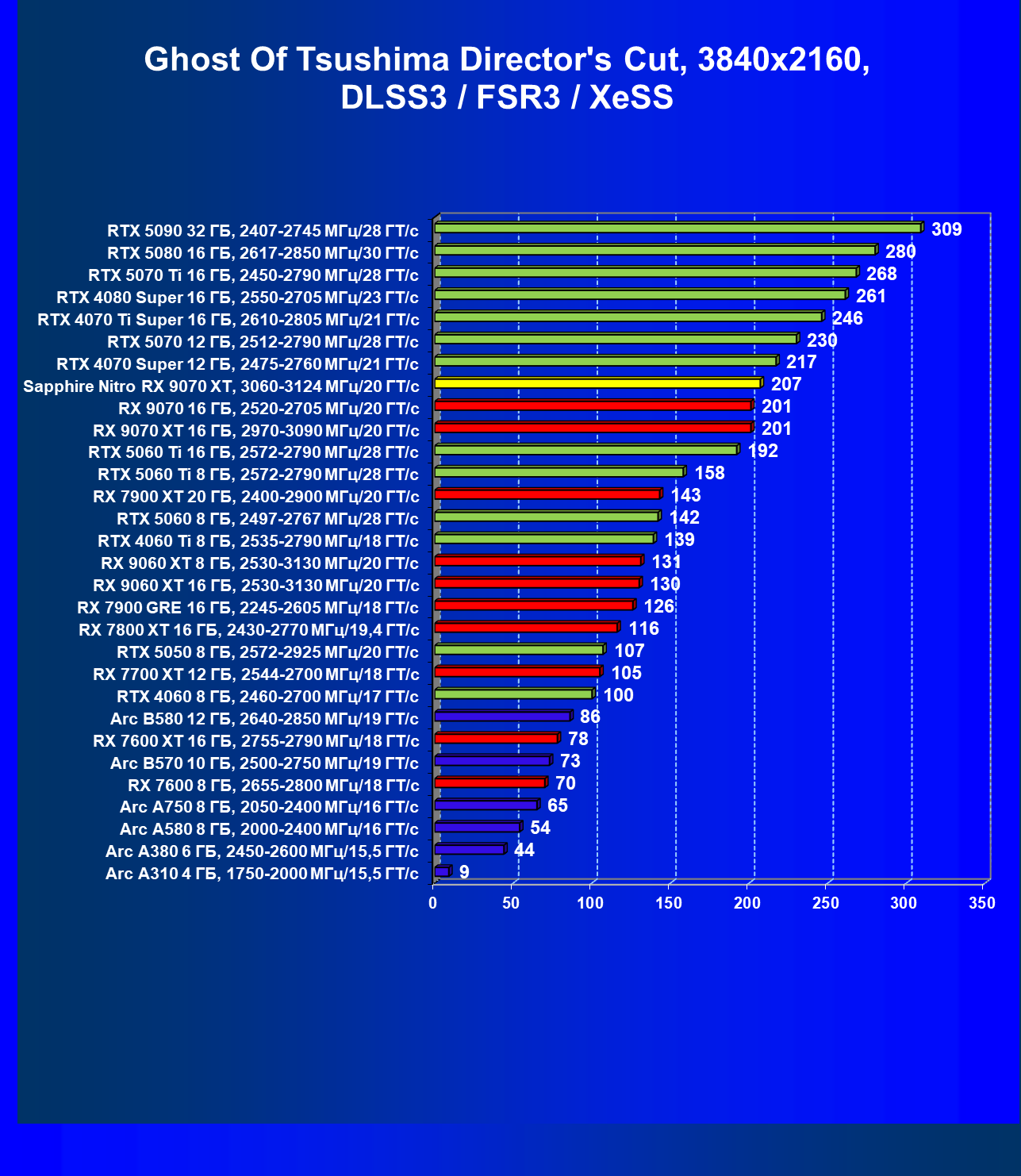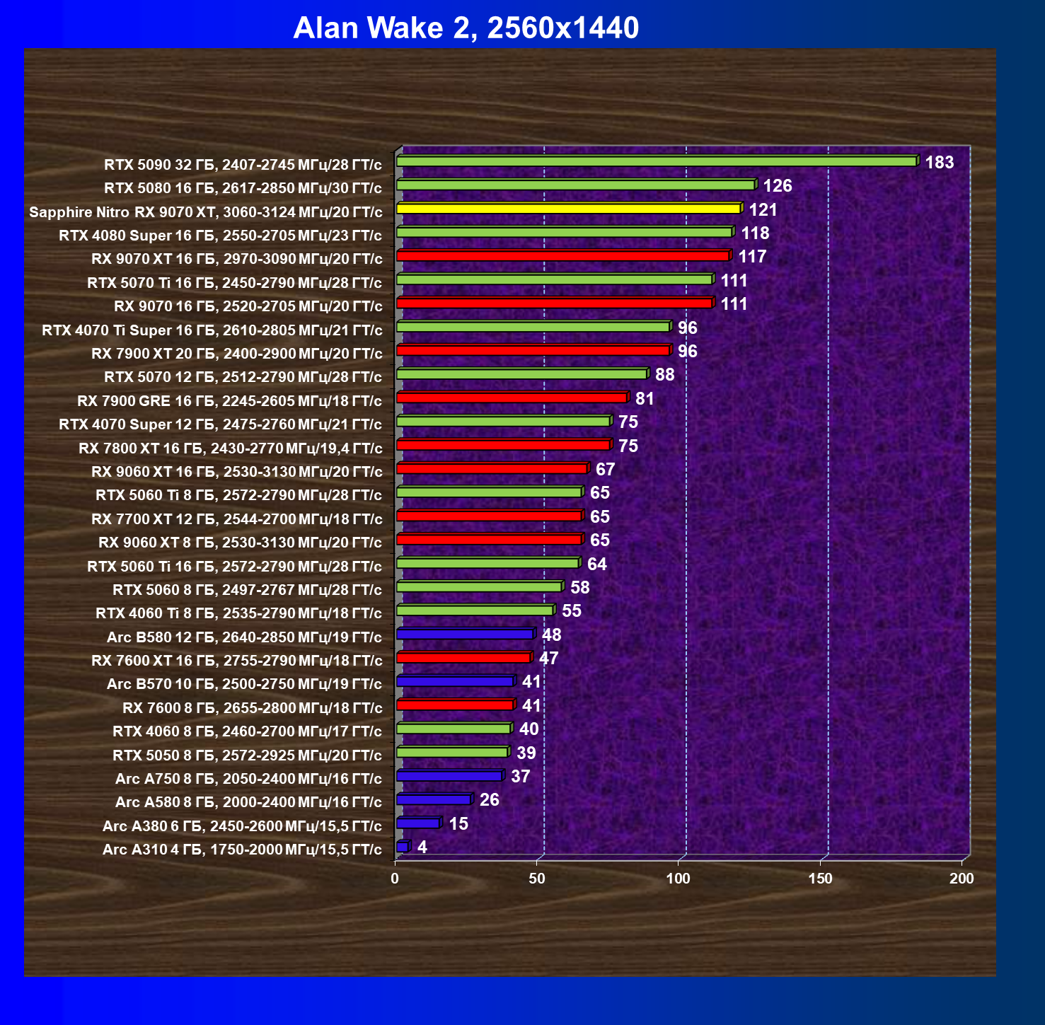 | 03 | Sapphire Nitro RX 9070 XT, 3060—3124 МГц/20 ГТ/с | 2482 | 306 | 81 000 |