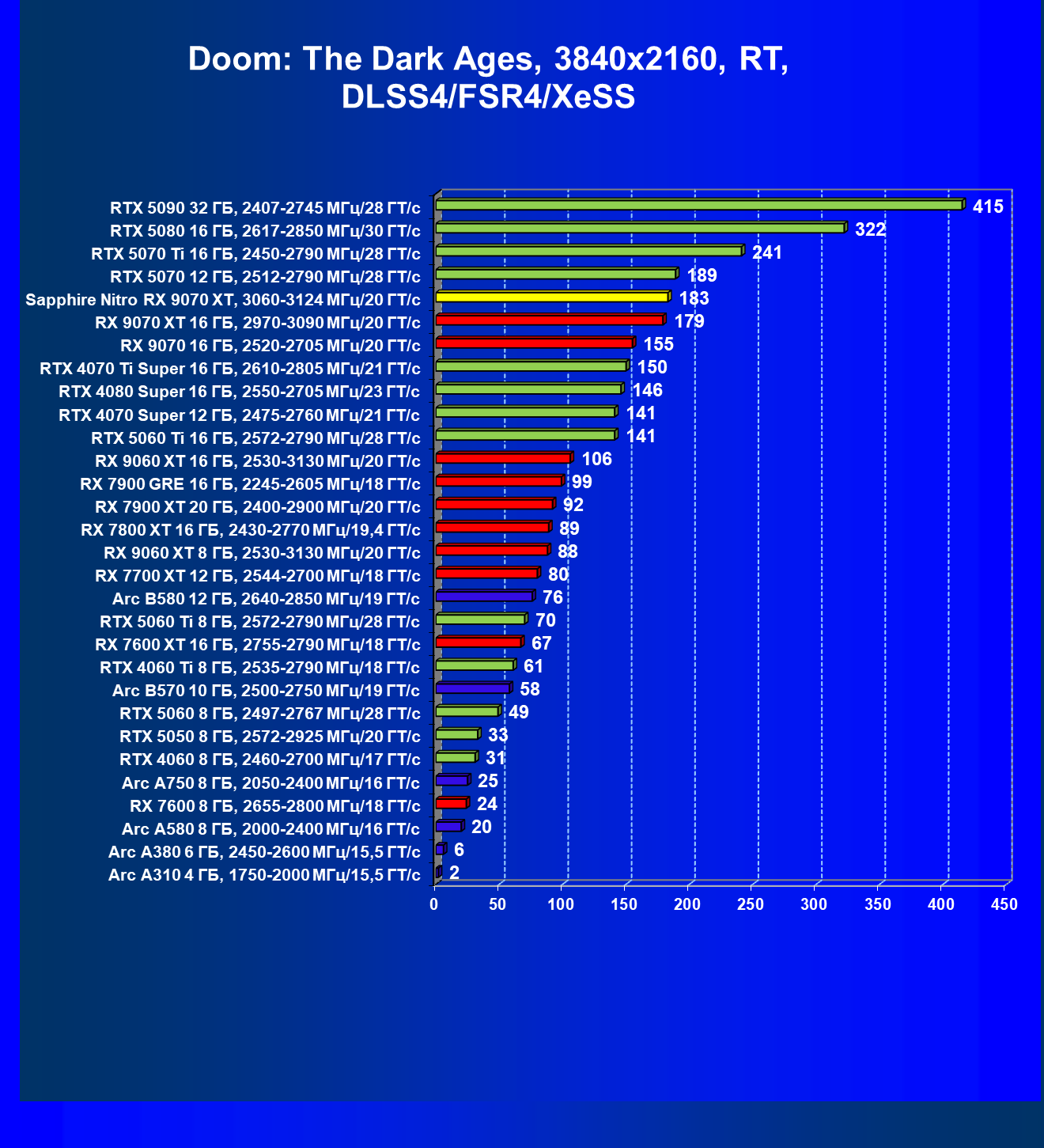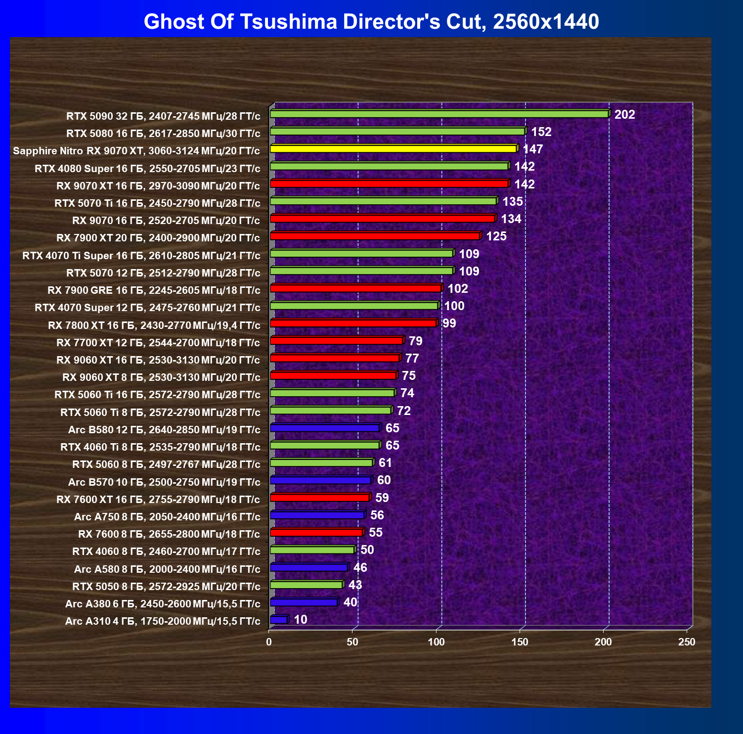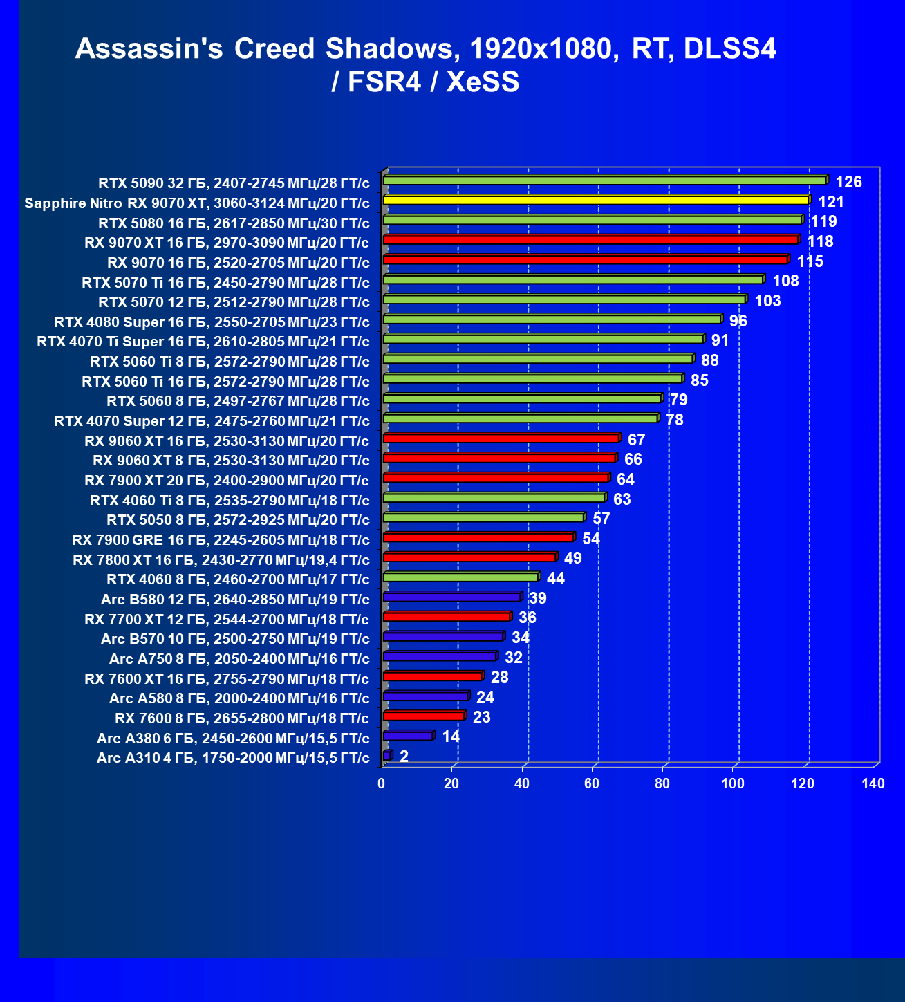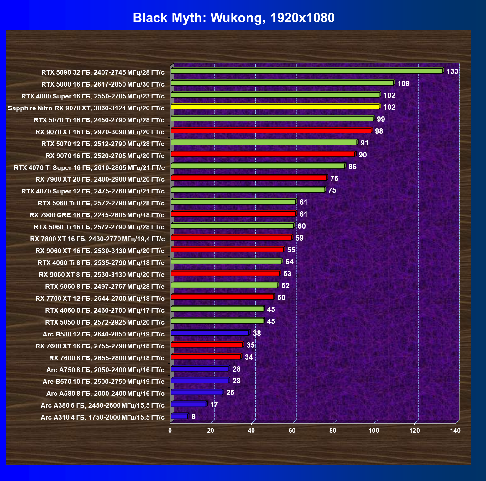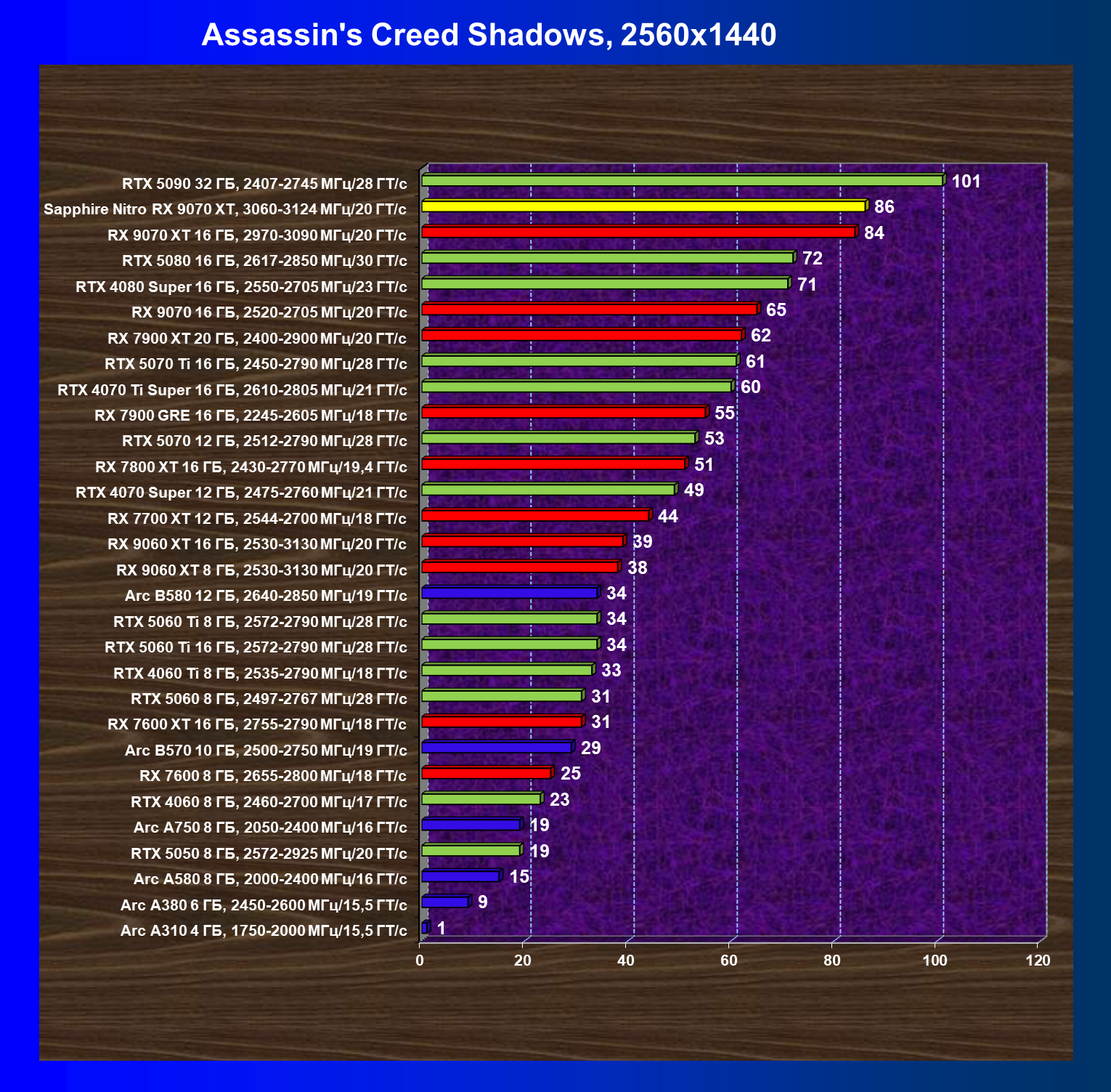 | 03 | Sapphire Nitro RX 9070 XT, 3060—3124 МГц/20 ГТ/с | 2482 | 306 | 81 000 |