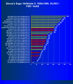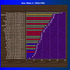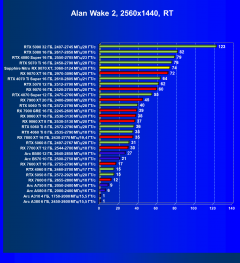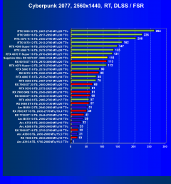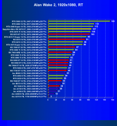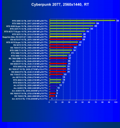 | 26 | RX 7800 XT 16 ГБ, 2430—2770 МГц/19,4 ГТ/с | 212 | 2540 | 120 000 |