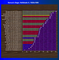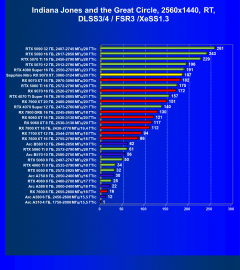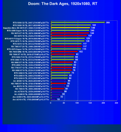 | 19 | RX 7800 XT 16 ГБ, 2430—2770 МГц/19,4 ГТ/с | 2540 | 212 | 120 000 |