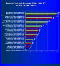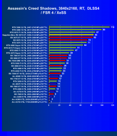 В играх с активной трассировкой лучей и технологиями масштабирования FSR/XeSS Radeon RX 9070 XT находится на одном уровне с GeForce RTX 4070 Ti Super и, опять же, весьма существенно опережает флагманов предыдущего поколения Radeon RX 7000. В разрешениях до 2.5K включительно можно получить хороший комфорт в играх на высоких настройках графики и без FSR/XeSS (только с RT), а во многих играх приемлемая производительность будет и в 4K, однако в таком разрешении в ряде игр использование трассировки лучей уже потребуется сочетать с технологиями динамического масштабирования.