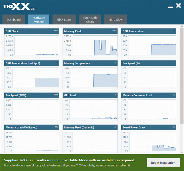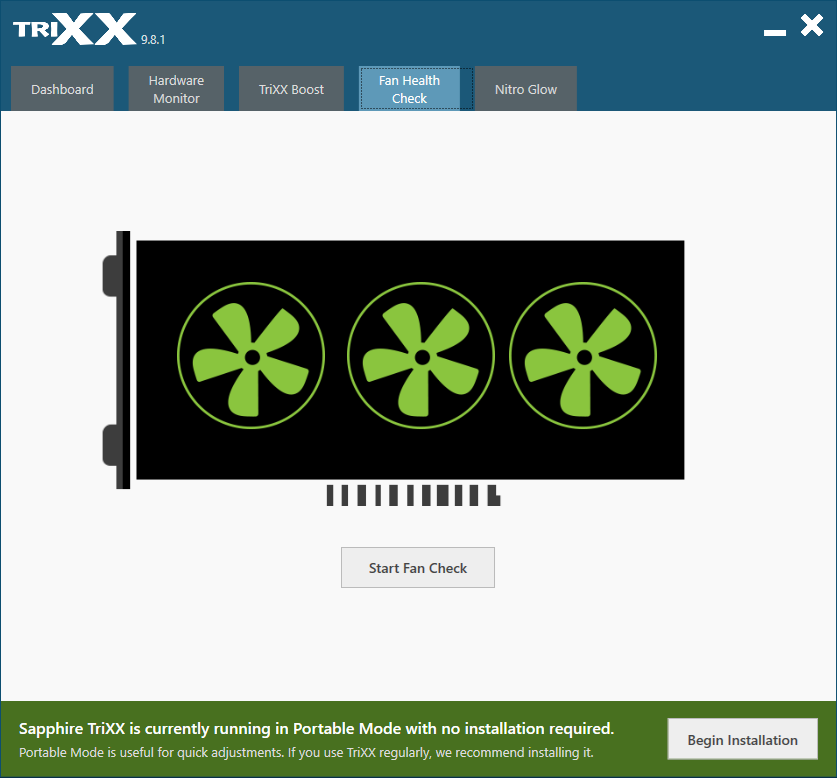 Управление работой карты обеспечивается с помощью фирменной программы Sapphire Trixx. Должен отметить, что по сути утилита дает управлять лишь технологией динамического масштабирования, подсветкой и проверять вентиляторы. Управлять частотами работы и вольтажами — не получится, для этого придется использовать настройки AMD в драйверах.