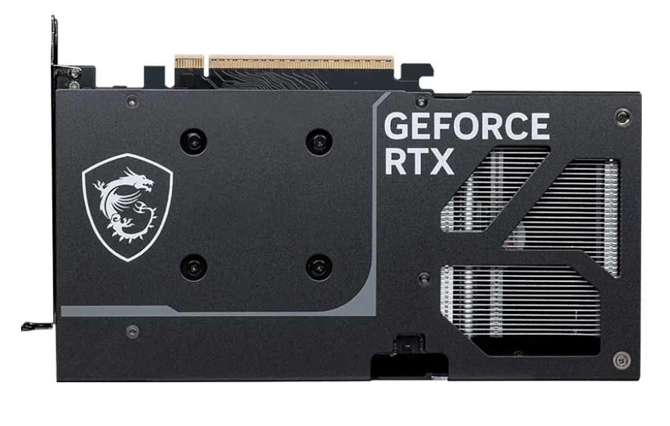 Выбранная нами карта MSI имеет компактные размеры (225×120×40 мм), она подходит для небольших корпусов, требует 2 слота для размещения. Карта имеет стандартный набор видеовыходов (3 DP 2.1b и 1 HDMI 2.1b) и один 8-контактный разъем питания типа PCIe 2.0.