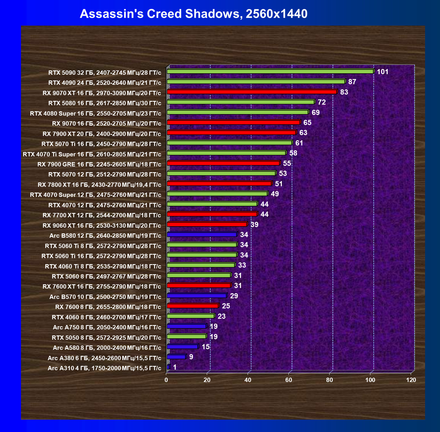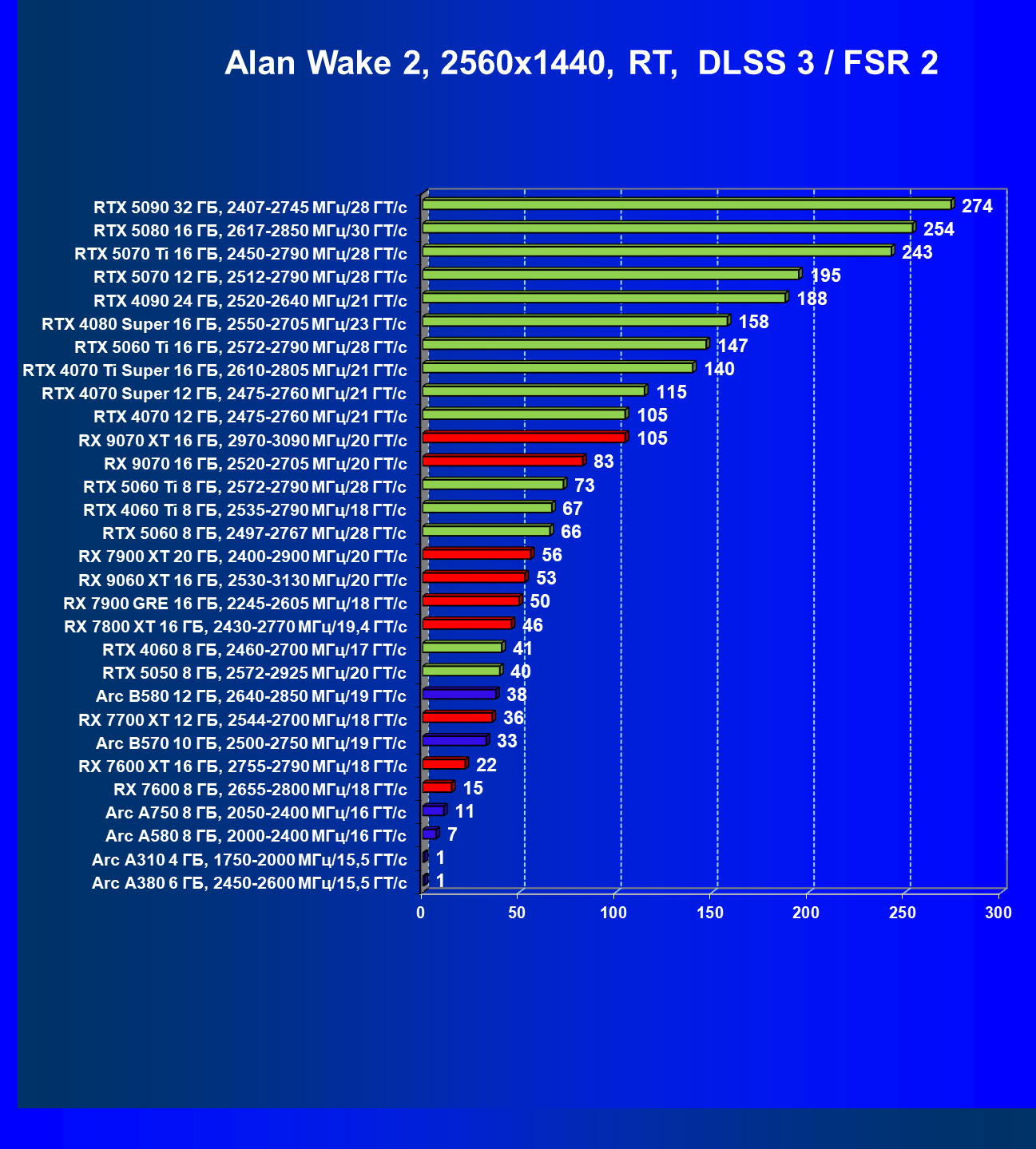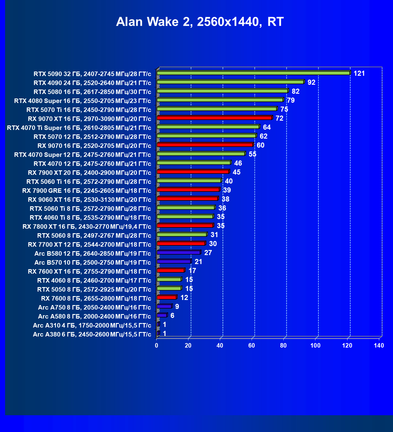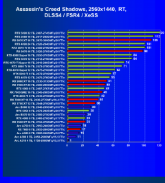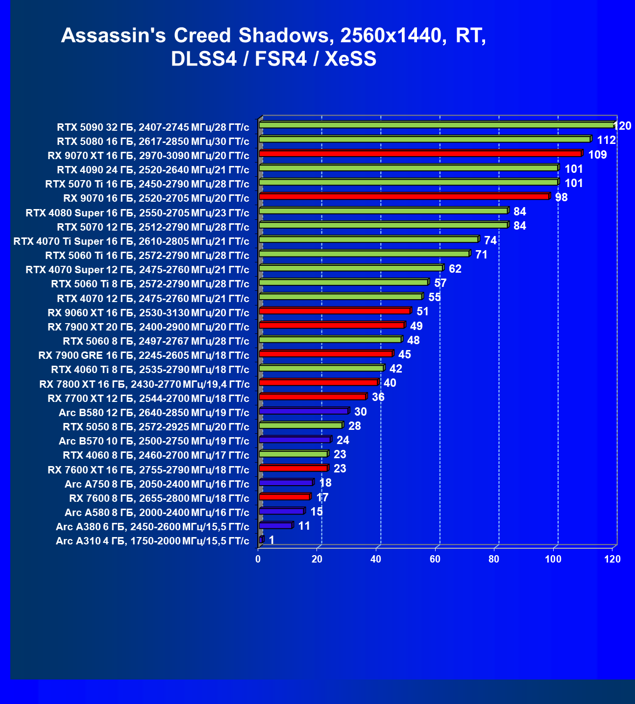 Для игр с RT в этом разрешении потребуются GeForce RTX 4070, GeForce RTX 5060 Ti, GeForce RTX 4060 Ti или Radeon RX 7800 XT (или более производительные карты). Задействование FSR/XeSS совместно с RT позволит поиграть в 2.5K с помощью Arc B580, Radeon RX 7700 XT, Radeon RX 9060 XT и некоторых близких к ним ускорителей, но далеко не во все игры.