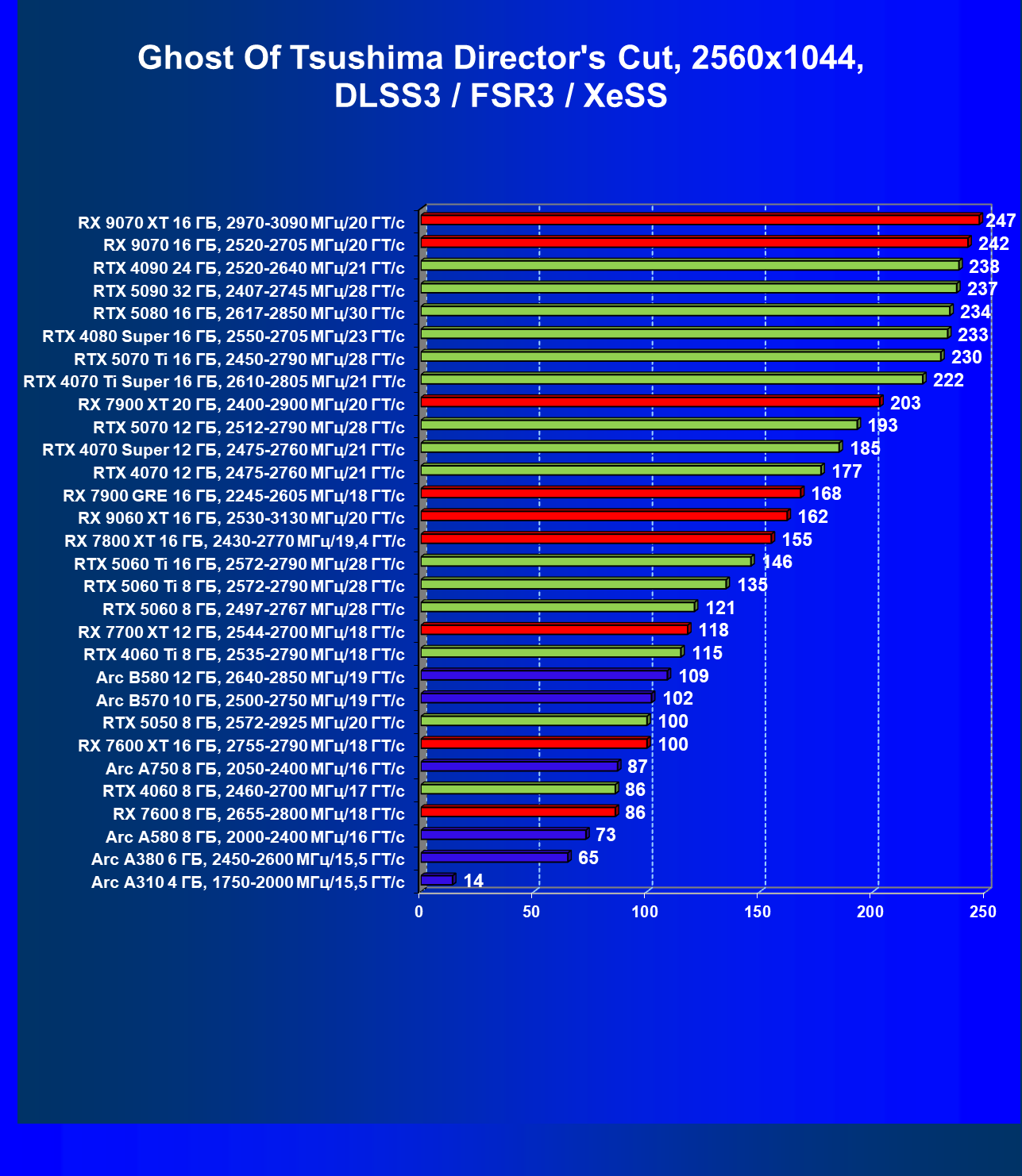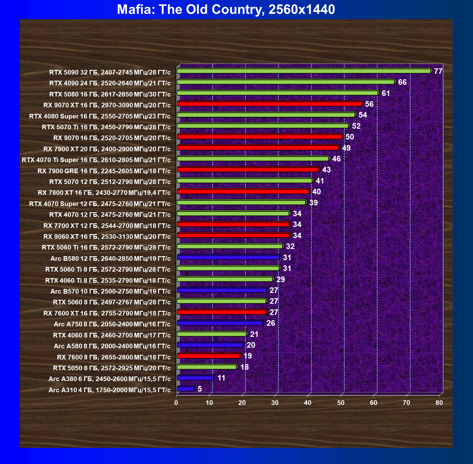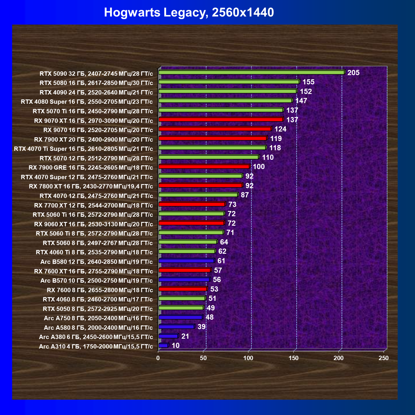 В рейтинге полезности для разрешения 2560×1440 в классических играх без RT лидером является ускоритель Arc B570 10 ГБ из-за достаточного объема памяти для такого разрешения и оптимальной цены. А вот в играх с RT и технологиями масштабирования самым выгодным является GeForce RTX 5070.