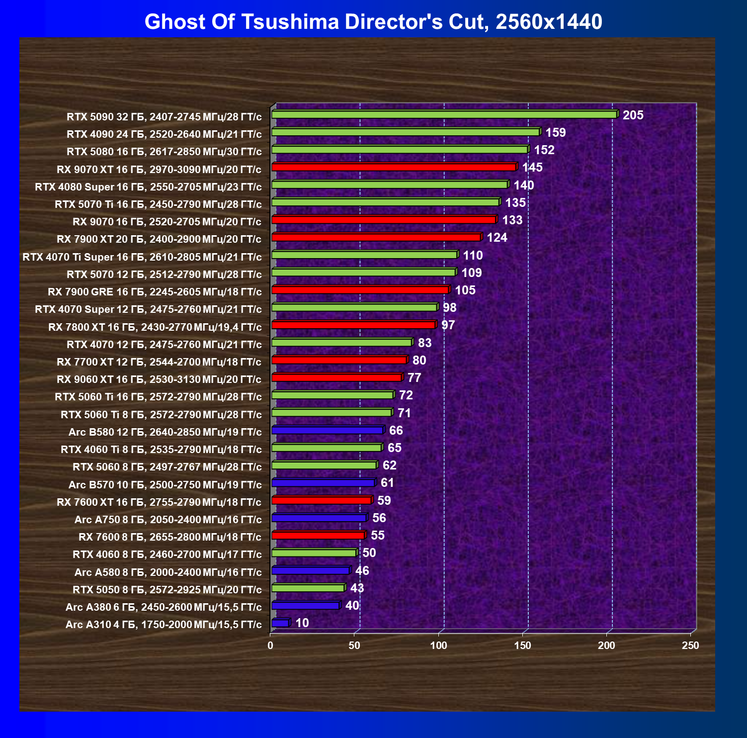 C момента выхода предыдущего выпуска «Лучшей карты» в свет вышло последнее новое решение Nvidia — GeForce RTX 5050, которое завершило линейку поколения GeForce RTX 50. По традиции, при добавлении в сравнение новых карт мы вынуждены снимать с рассмотрения такое же количество ранее изучавшихся ускорителей. В данном случае пришлось убрать из списка участников Radeon RX 7900 XTX (видеокарта морально устарела, да и в продаже ее по нормальным ценам уже почти не найти). Напоминаем, что по всем снятым с рассмотрения картам можно получить информацию из наших предыдущих выпусков «Лучшей карты», благо с новыми версиями драйверов их производительность уже практически не меняется.