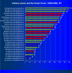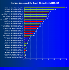 Ускорители уровня Radeon RX 7900 XT, Radeon RX 7900 GRE, GeForce RTX 4070 Super и GeForce RTX 4070 при включении RT в разрешении 4K смотрятся бледнее, однако всё еще способны обеспечить приличный комфорт в играх.