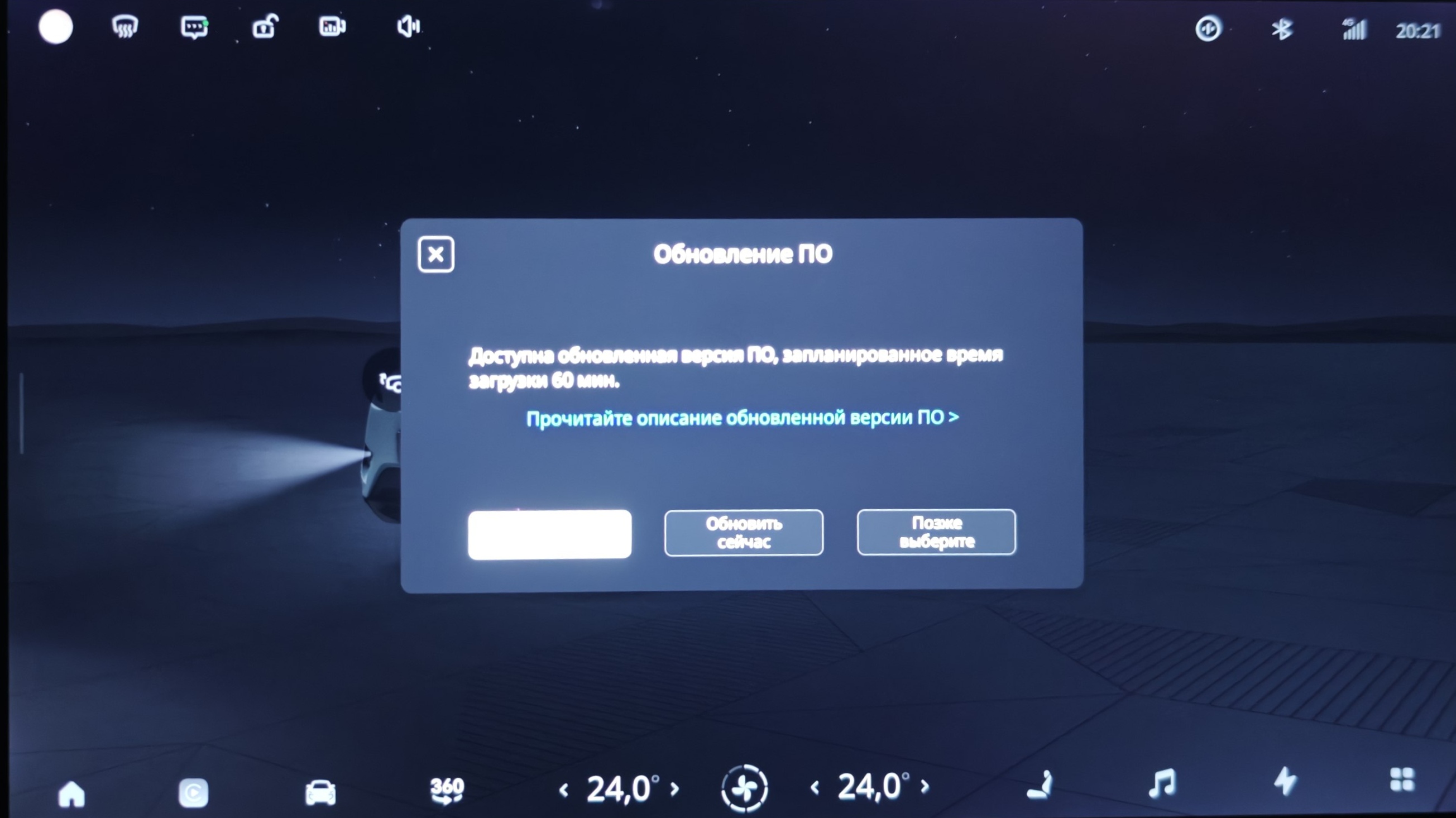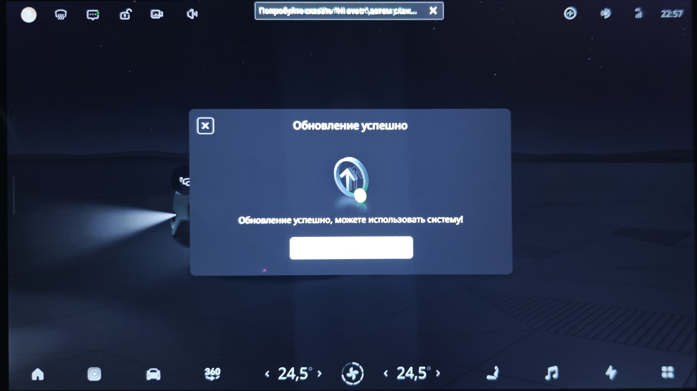 Никаких ошибок, перезагрузок или «кирпичей» — всё заняло около 5–6 часов (включая скачивание большого пакета). После завершения система предложила короткую калибровку камер и радаров (за пару минут на парковке), и машина была готова к выезду.
