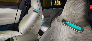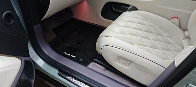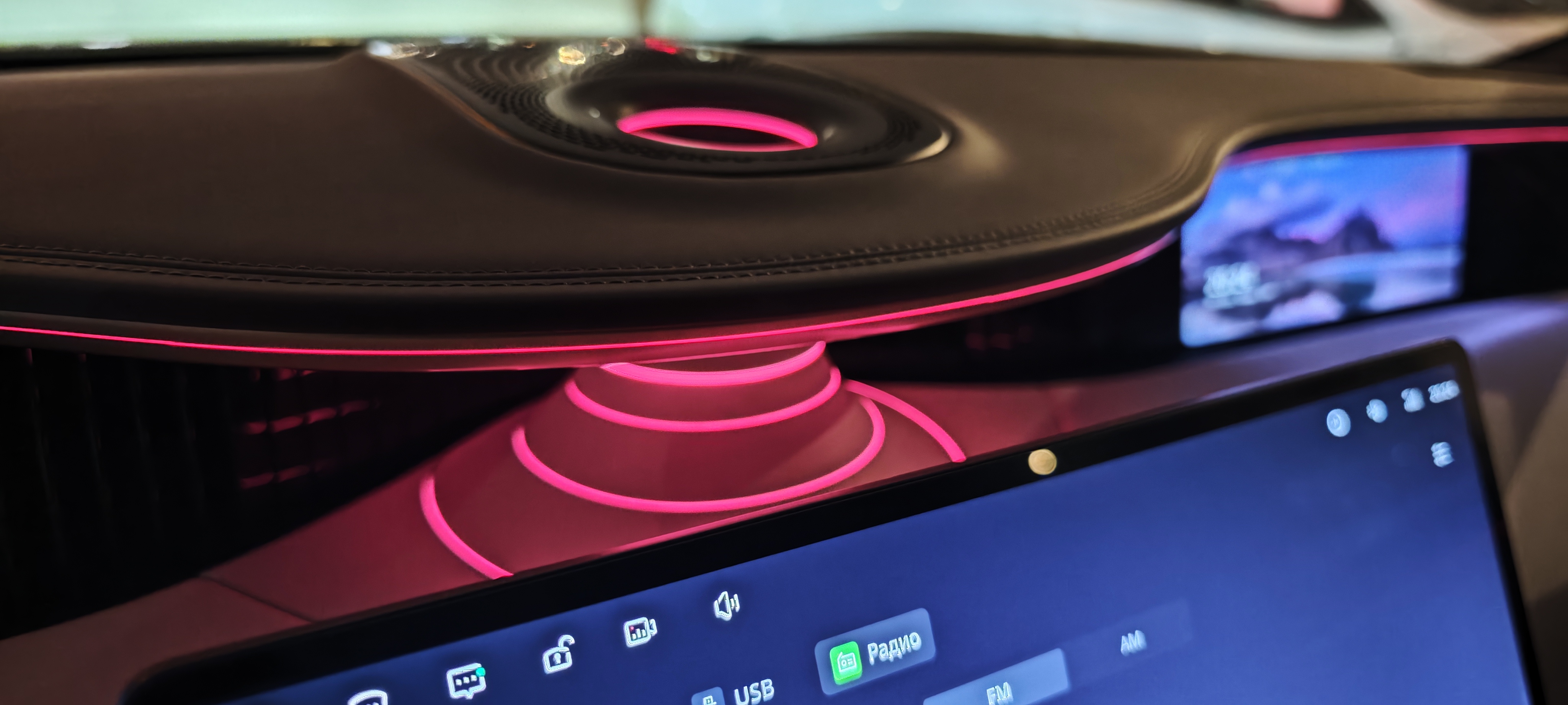 Световые линии проходят по дверным картам, приборной панели, центральной консоли и даже под сиденьями, создавая ночью уютный и футуристический эффект «парящего» салона.
