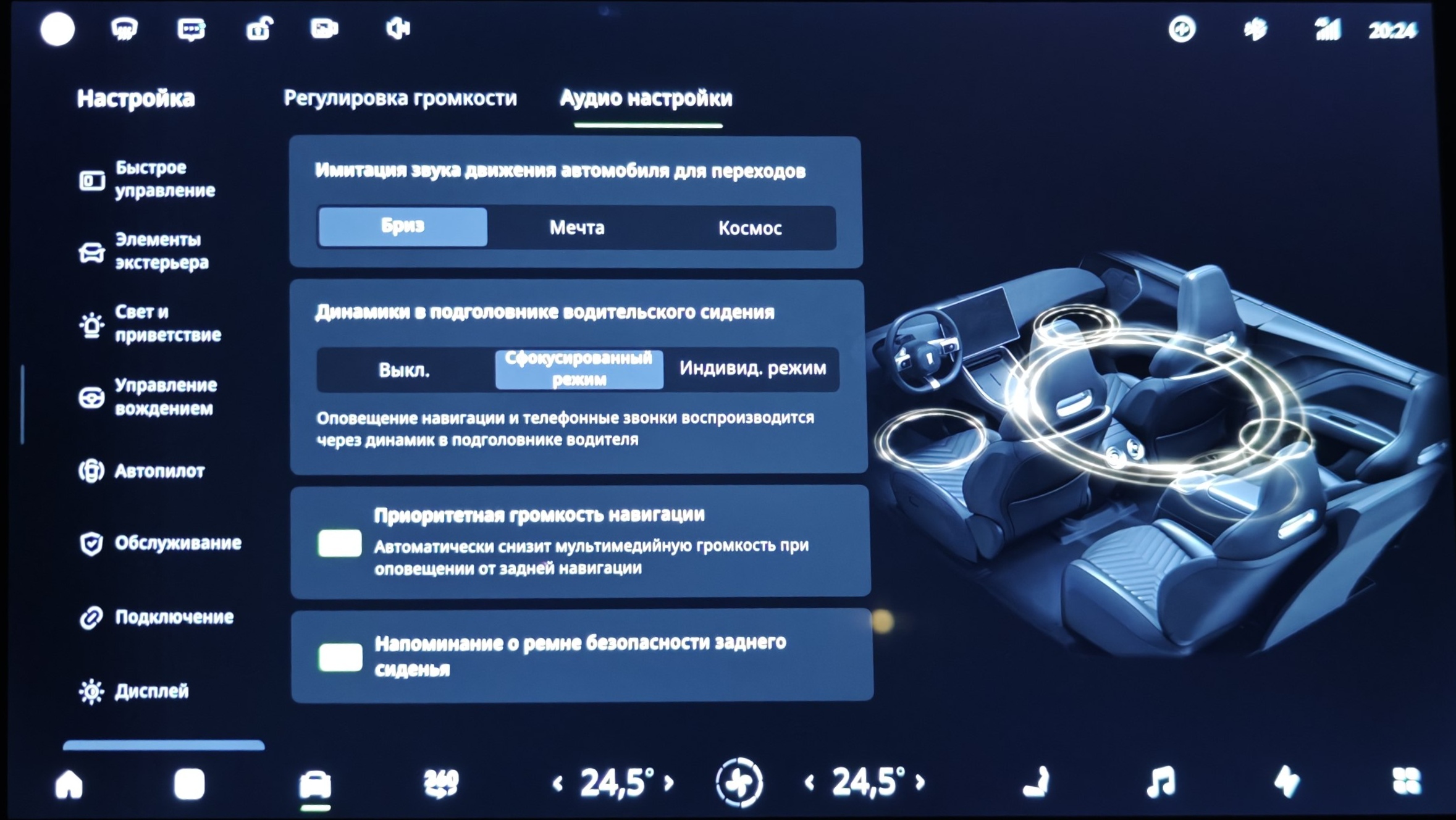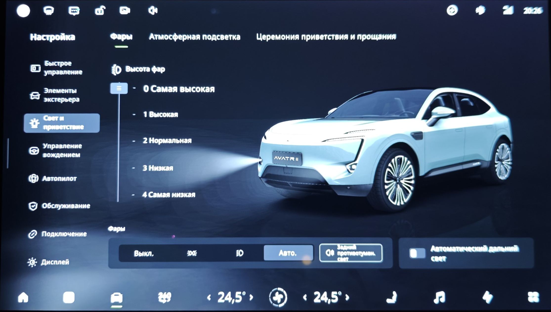Настройка автоматики дальнего света, высоты светового пучка и включение заднего противотуманного света выведена в экран мультимедийной системы.