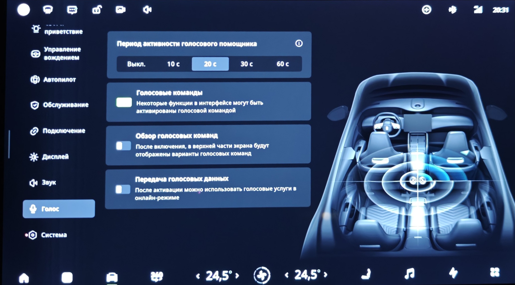 Он умеет управлять основными функциями: климат-контролем, мультимедиа (включить музыку, радио, изменить трек), навигацией (задать адрес), открытием/закрытием окон, регулировкой сидений, запуском массажа/вентиляции и некоторыми настройками автомобиля.