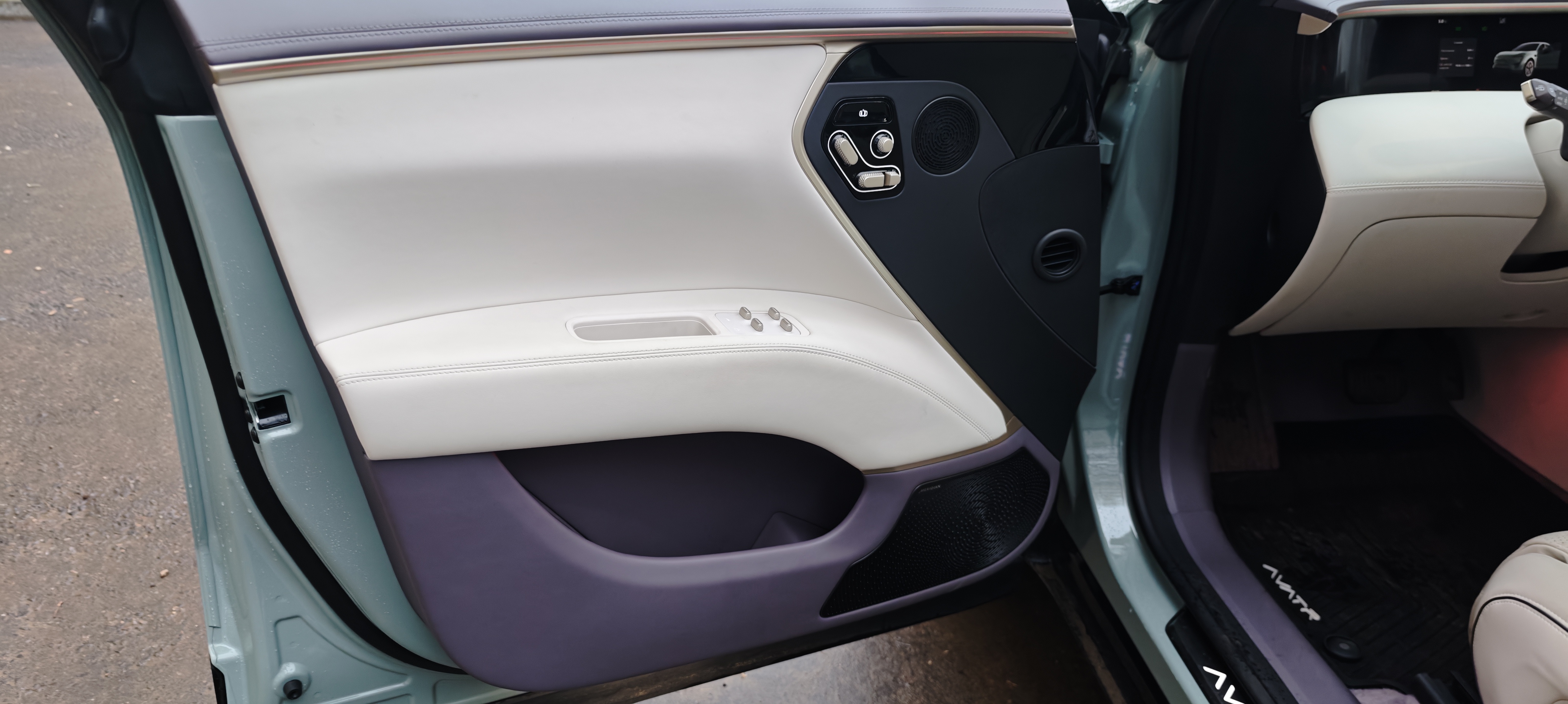 Однако есть и обратная сторона: белые/светлые участки (особенно на сиденьях, подлокотниках и нижних частях дверей) оказались довольно маркими: уже через неделю эксплуатации на них появляются следы от одежды (джинсы, тёмная обувь), пыль и мелкие загрязнения, которые заметны сразу. Для поддержания идеального вида приходится регулярно протирать салон специальными средствами, это немного омрачает впечатление от отличных материалов.