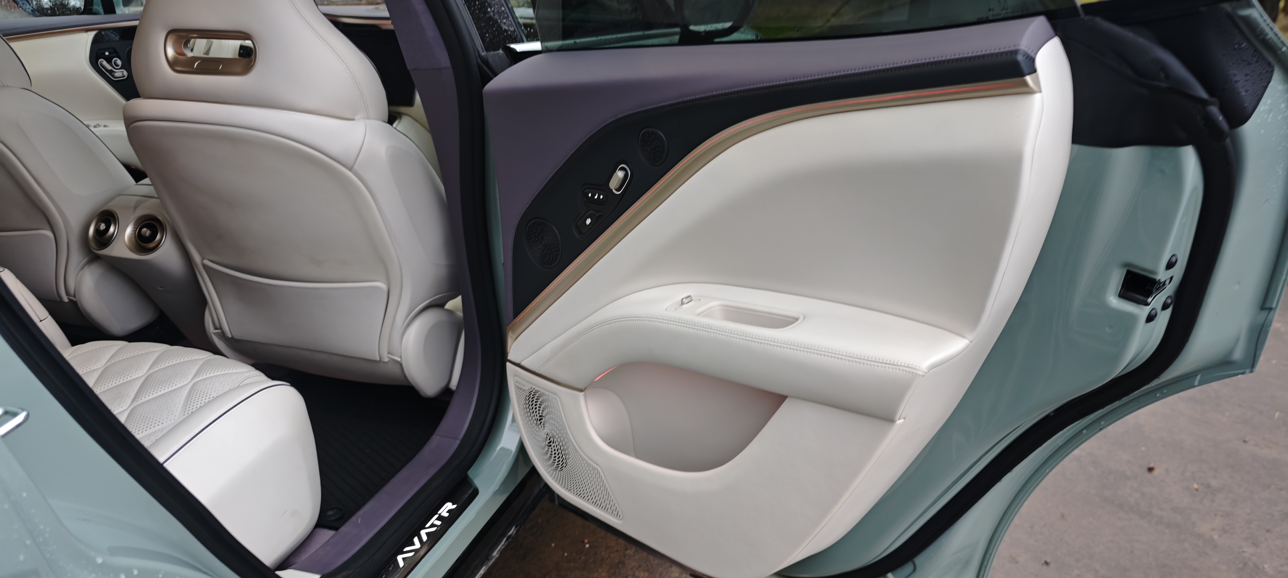 В салоне Avatr 11 используются мягкая перфорированная кожа Nappa, приятный на ощупь «soft-touch» пластик на торпедо и дверных картах, алюминиевые вставки и аккуратная прострочка — всё собрано плотно, без скрипов или зазоров.