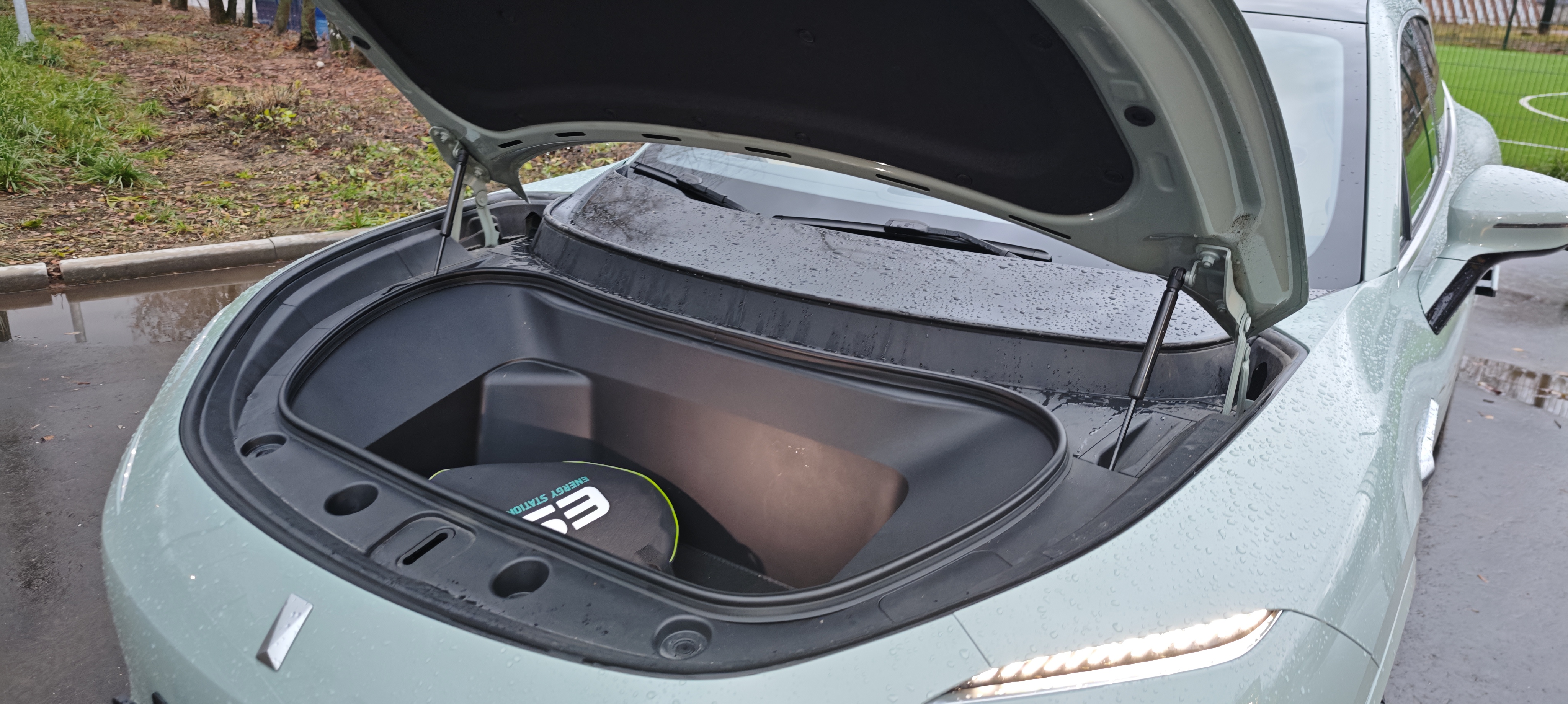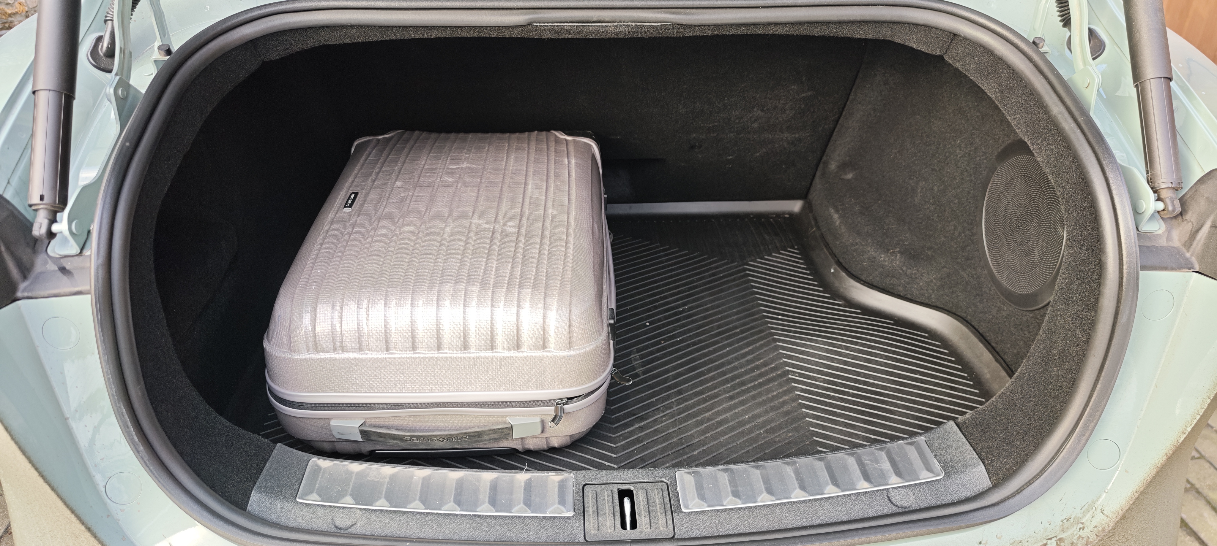 Электромобиль, как и многие полноприводные электрокары, оснащён передним багажником (франком), который расположен под капотом вместо традиционного двигателя. Объём этого отсека составляет 95 литров, что делает его достаточно вместительным для класса премиальных электрических кросс-купе.