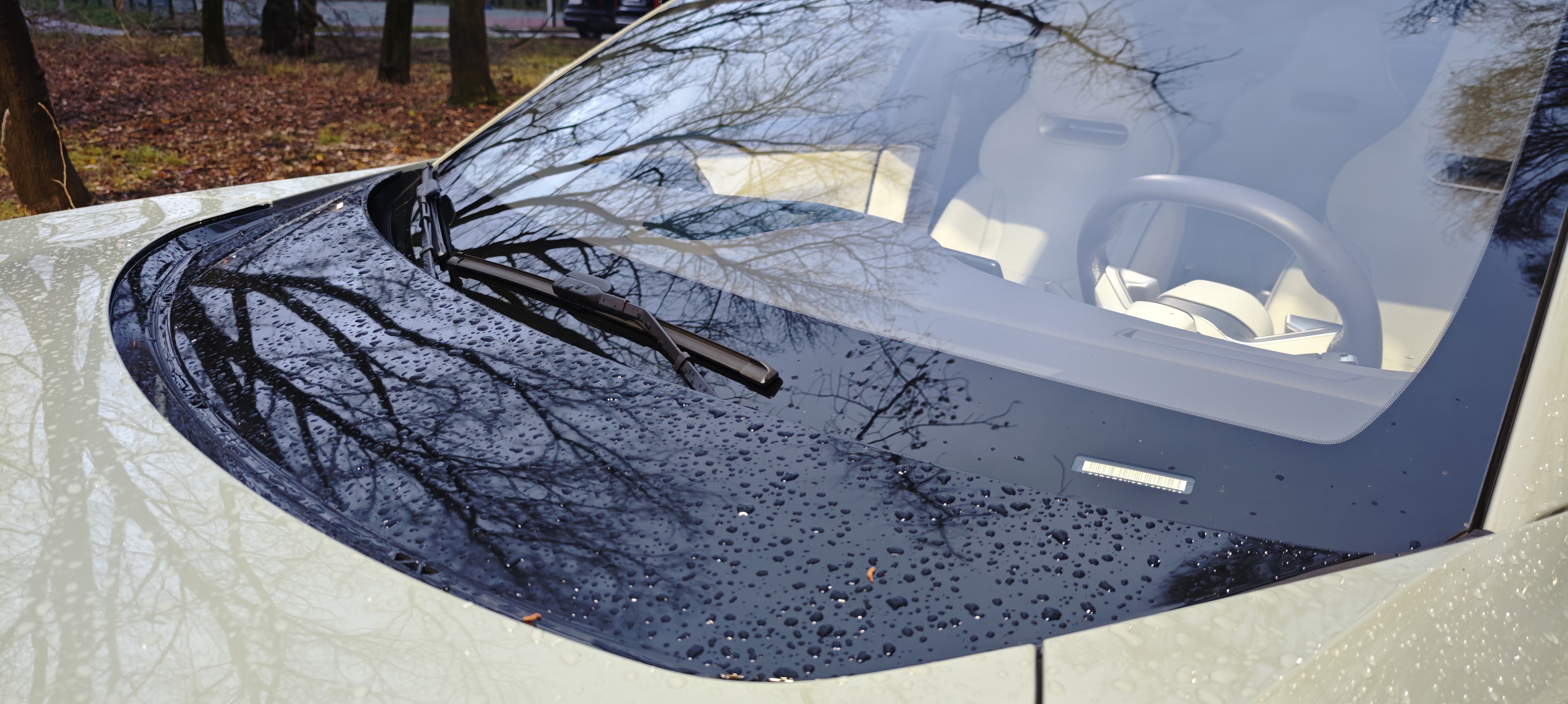 Передняя часть минималистична и агрессивна: отсутствует традиционная решётка радиатора (вместо неё гладкая панель), а узкие LED-фары с C-образными светодиодными полосами придают «лицу» автомобиля уверенный и технологичный вид.