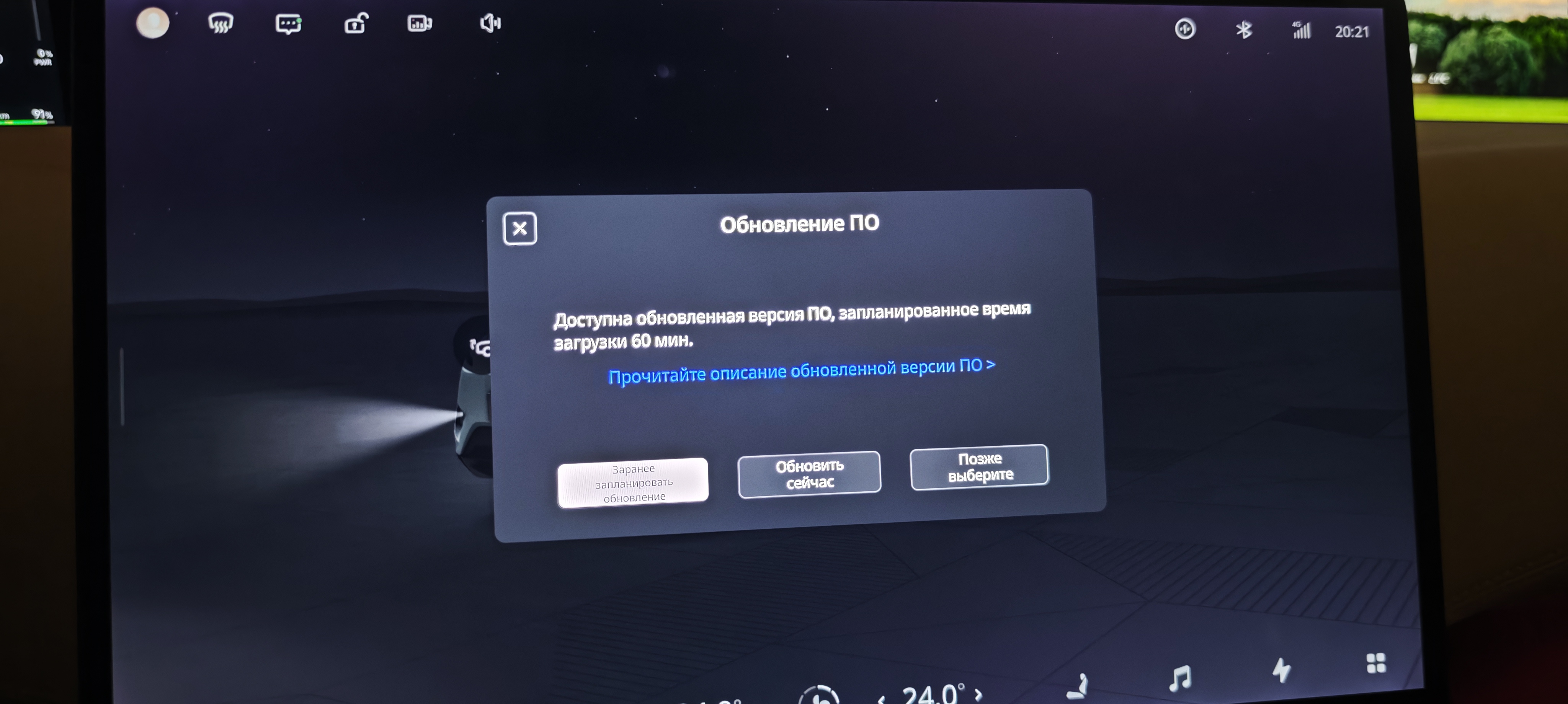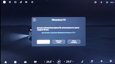 Процесс прошёл полностью автоматически и гладко: вечером перед сном запустили загрузку и установку, а утром нас уже ждал обновлённый автомобиль.