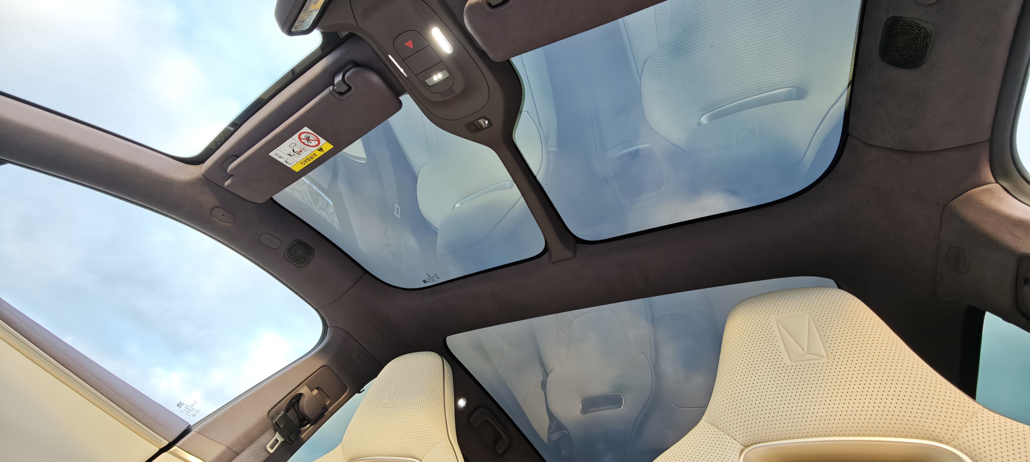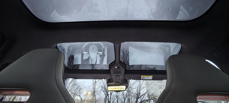 В нашем Avatr внутренняя конструкция крыши выполнена в трёхсекционном формате с раскладными солнцезащитными шторками, которые позволяют регулировать уровень света.