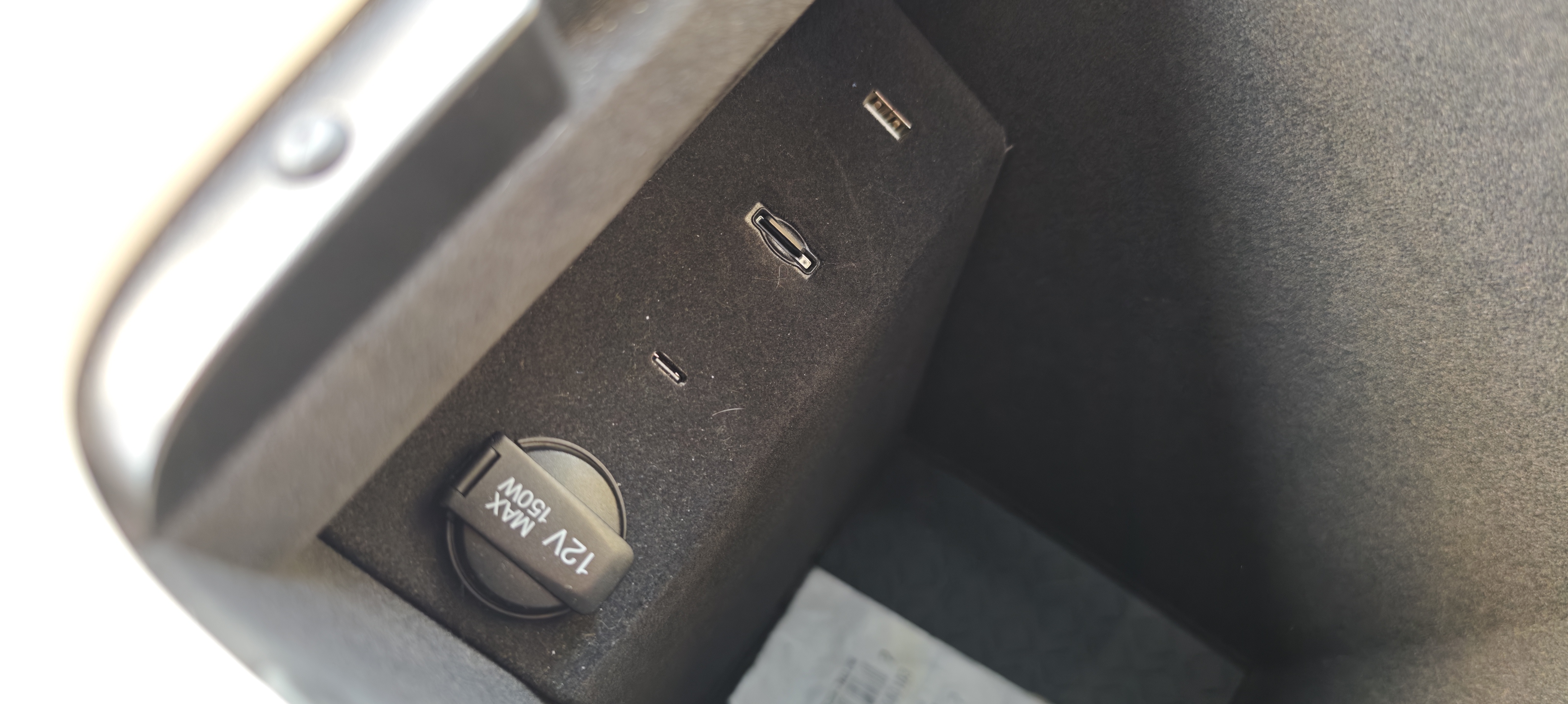 Расположенные в центральном подлокотнике (между передними сиденьями) два USB-порта: типа A и типа C — позволяют подключить обычную USB-флешку или иной внешний накопитель.