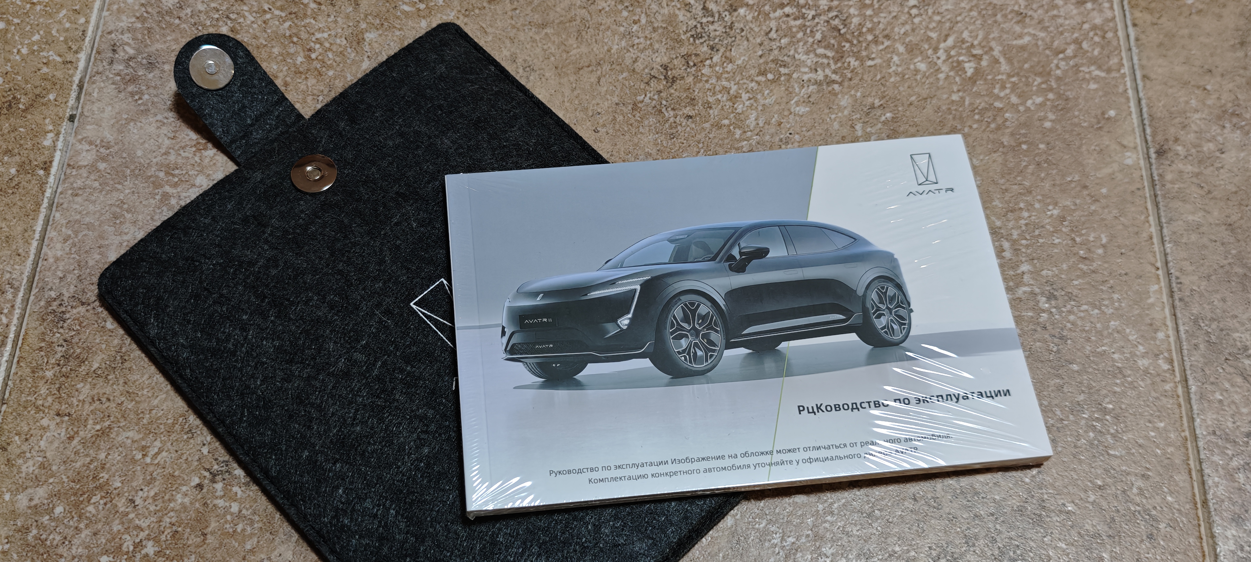 Руководство по эксплуатации Avatr 11 поставляется в фирменном чехле, которое традиционно размещено в бардачке. Чувствуется, что до нас им никто и не интересовался. Оно оставалось запечатанным в чехле с завода.