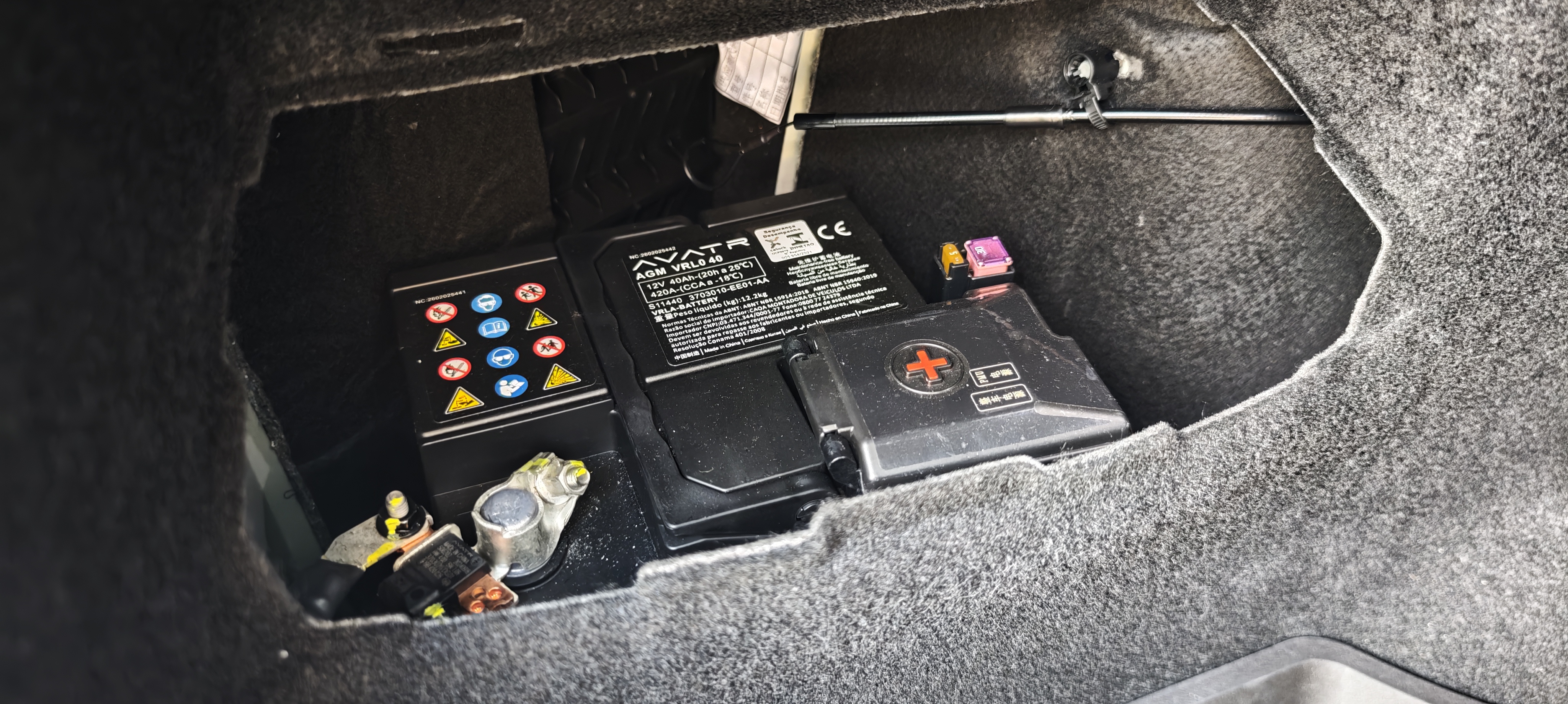 Да, несмотря на то, что Avatr 11 — полноценный электромобиль с высоковольтной тяговой батареей, как и почти все современные автомобили, он имеет отдельную маленькую 12-вольтовую батарею. Она отвечает за питание бортовой электроники при выключенном высоковольтном контуре (центральный замок, сигнализация, часы, память настроек, мультимедиа в режиме ожидания), запуск высоковольтной системы (контакторы, реле, ЭБУ), а также за работу аварийных систем и освещения при полном разряде основной батареи. По фото видно, что Avatr используют батареи AGM VRLA на 40 А·ч (пусковой ток 420 А).