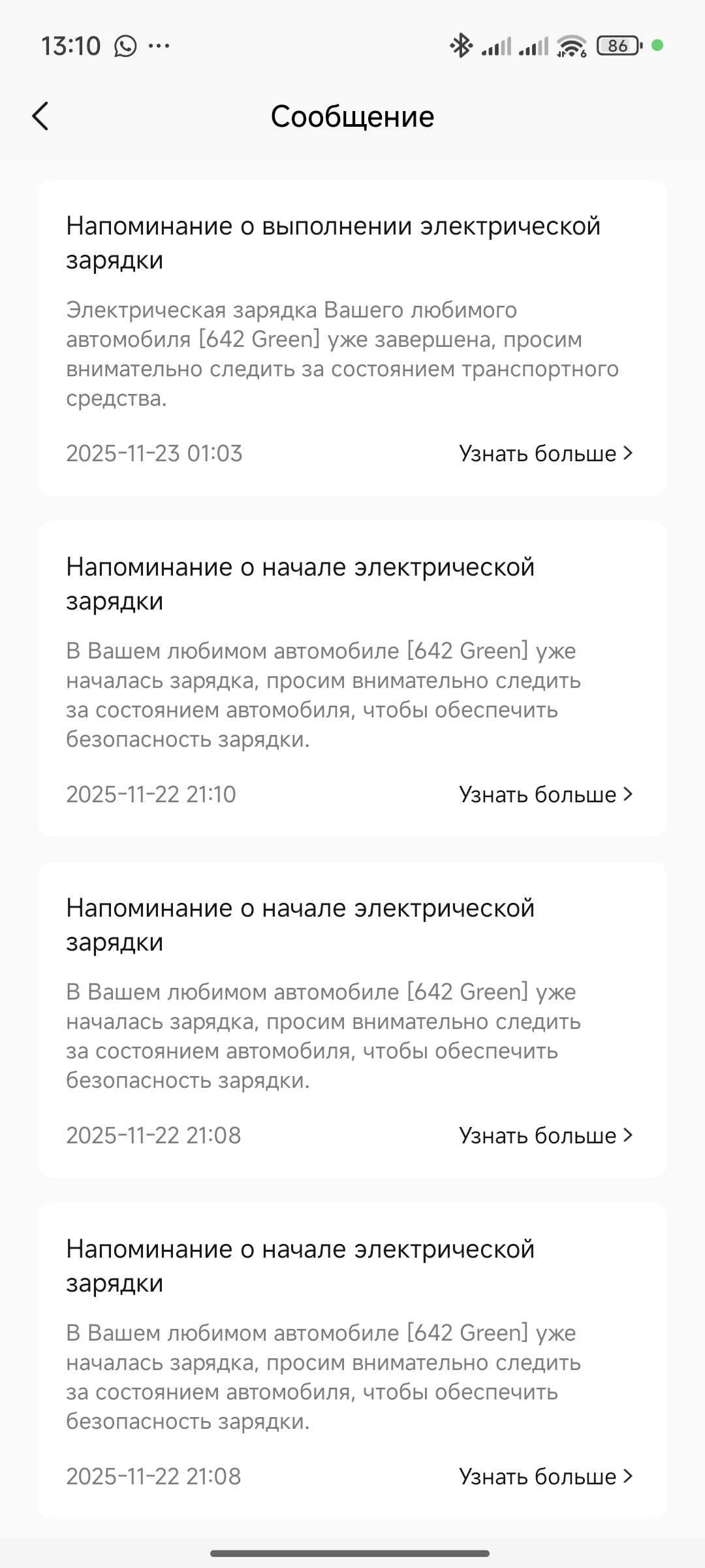 После полного дня поездок — по работе, делам в городе, поездкам с семьёй или по пригороду (реальный суточный пробег 100–200 км при среднем расходе 20–24 кВт·ч/100 км в смешанном цикле) — автомобиль возвращается домой с остатком заряда 50–70%.