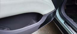 Дверные ручки выполнены в выдвижном формате для лучшей аэродинамики (хотя сейчас до сих пор ведутся дебаты насчёт безопасности такого решения в аварийных случаях).