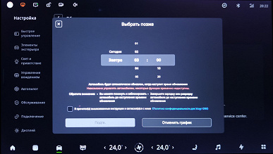 Мы выбрали установку в ночное время — автомобиль был подключён к домашней Wi-Fi-сети и стоял на зарядке.
