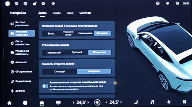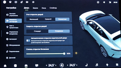 Угол и скорость открытия дверей настраивается и регулируется в меню мультимедийной системы.