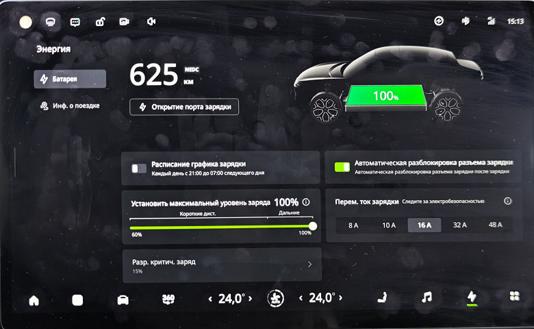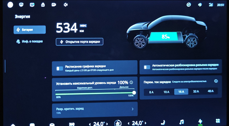 В российской версии используется европейский стандарт CCS Combo 2 (вместо китайского GB/T), что делает зарядку удобной на большинстве российских станций (поддержка как AC переменным током до 11 кВт, так и DC постоянным до 240 кВт).
